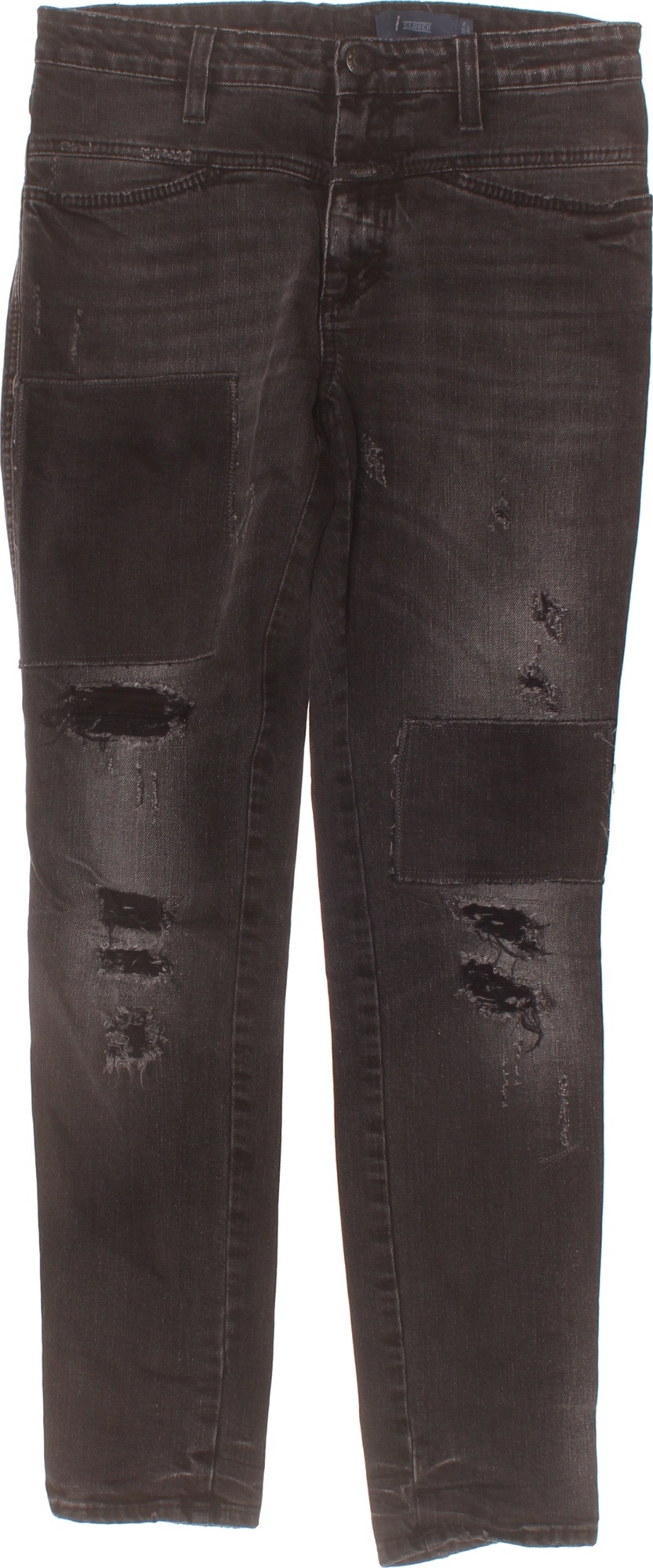 CLOSED Dámské černé seprané džíny skinny s nášivkami a dírami Velikost 26
