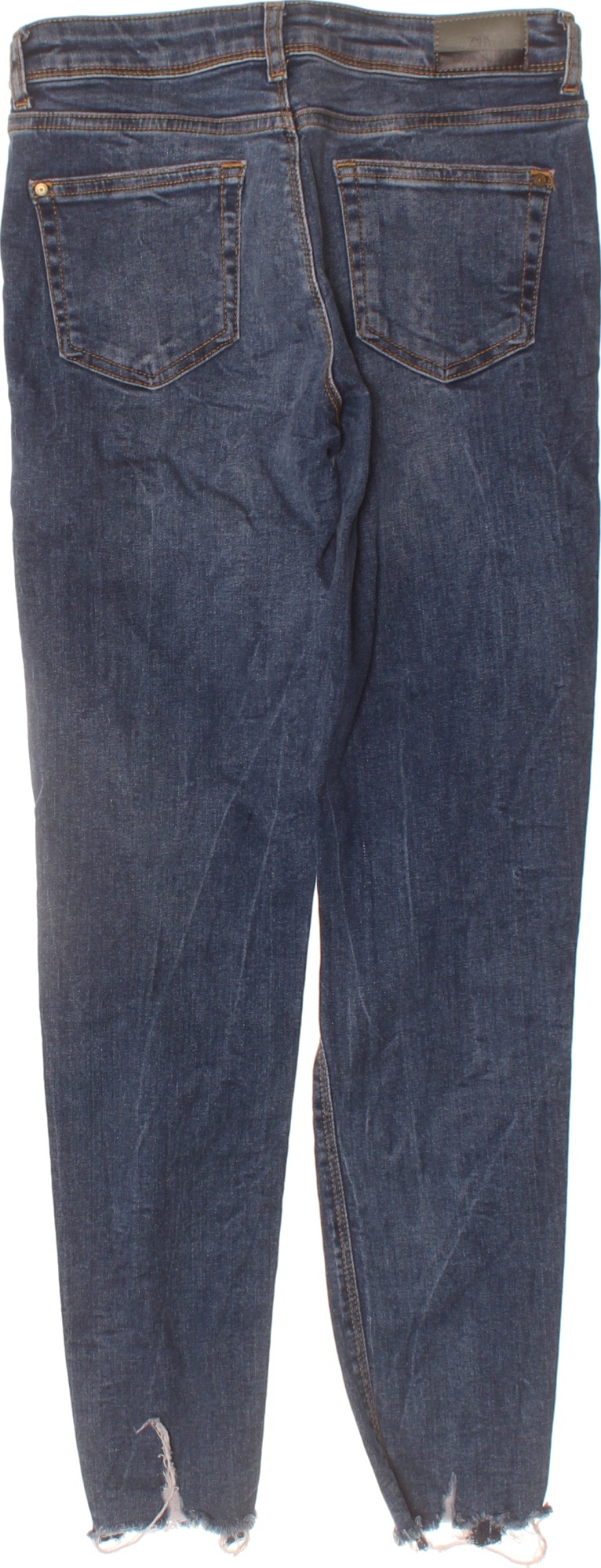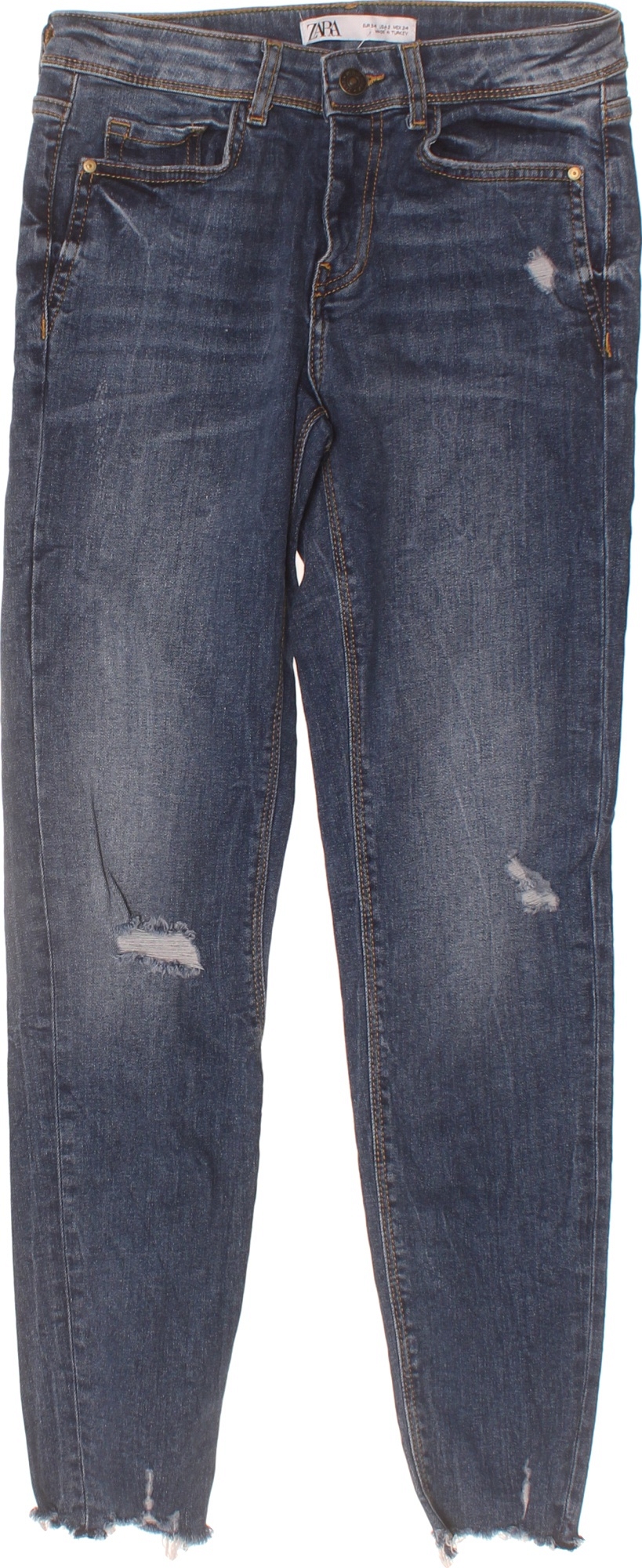 ZARA Dámské modré strečové džíny s dírami Vel. 34