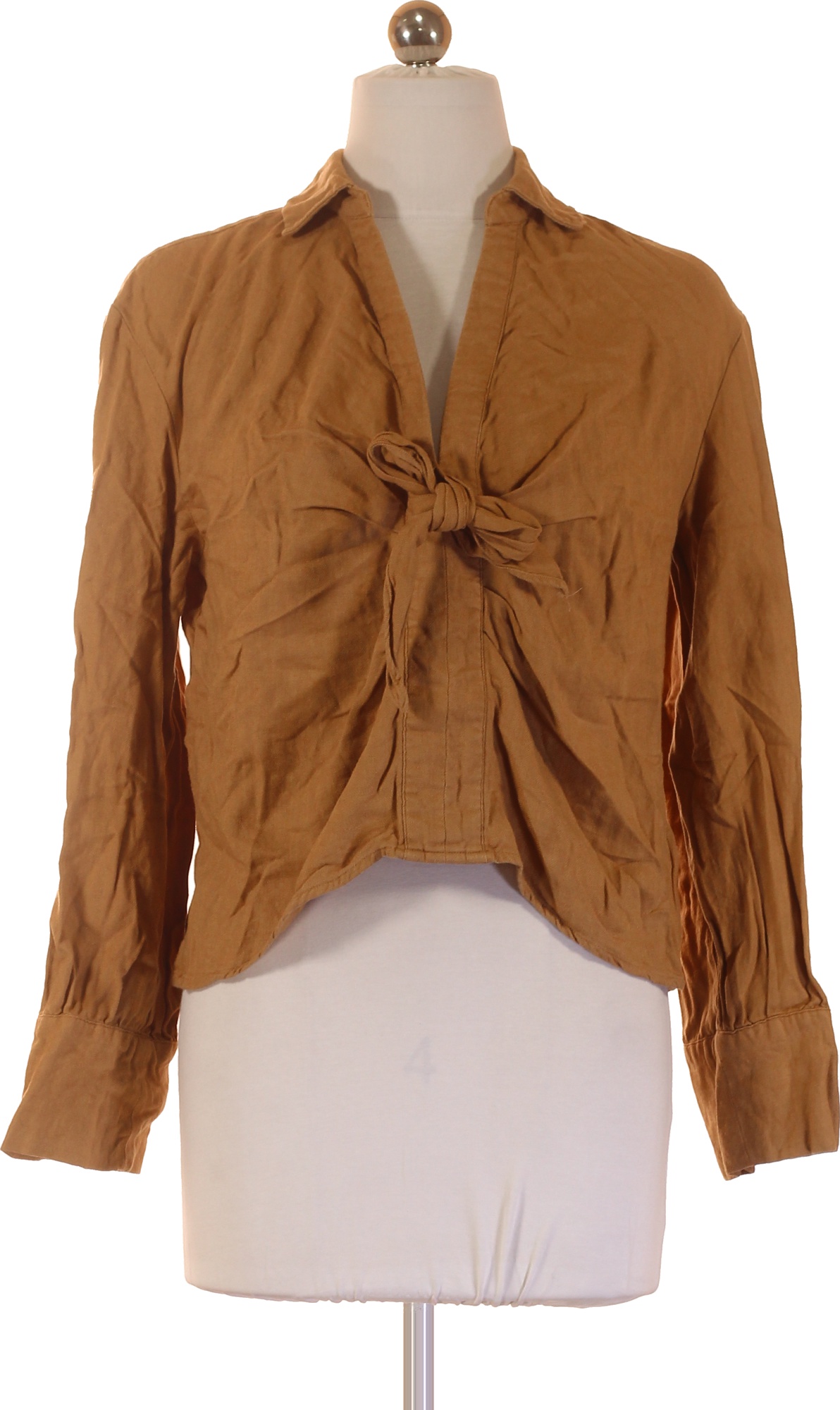 Hnědá halenka s dlouhým rukávem a uzlem Velikost 34