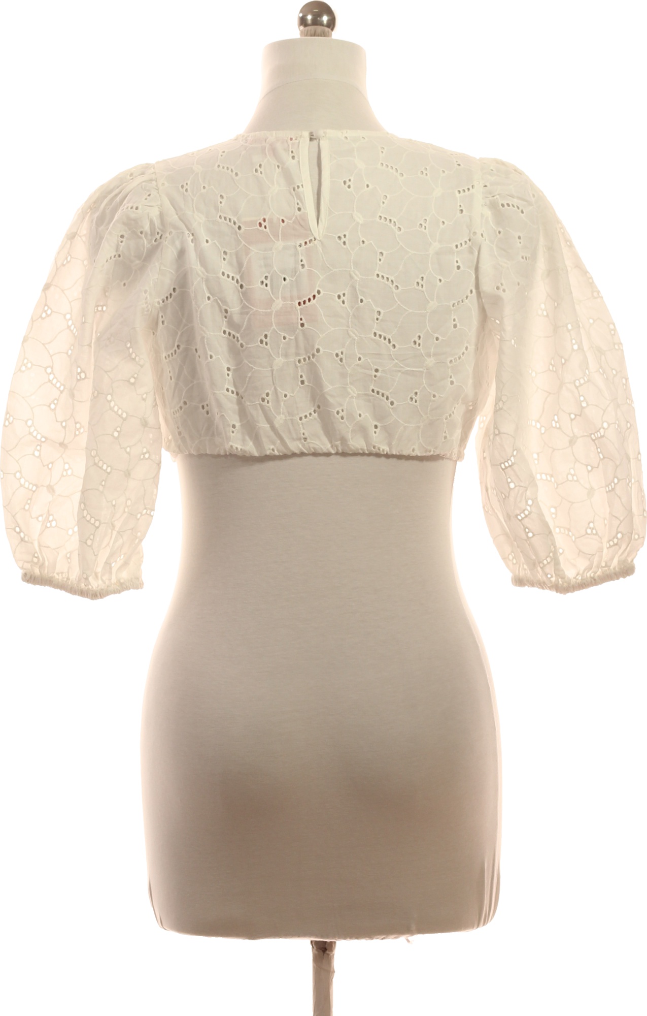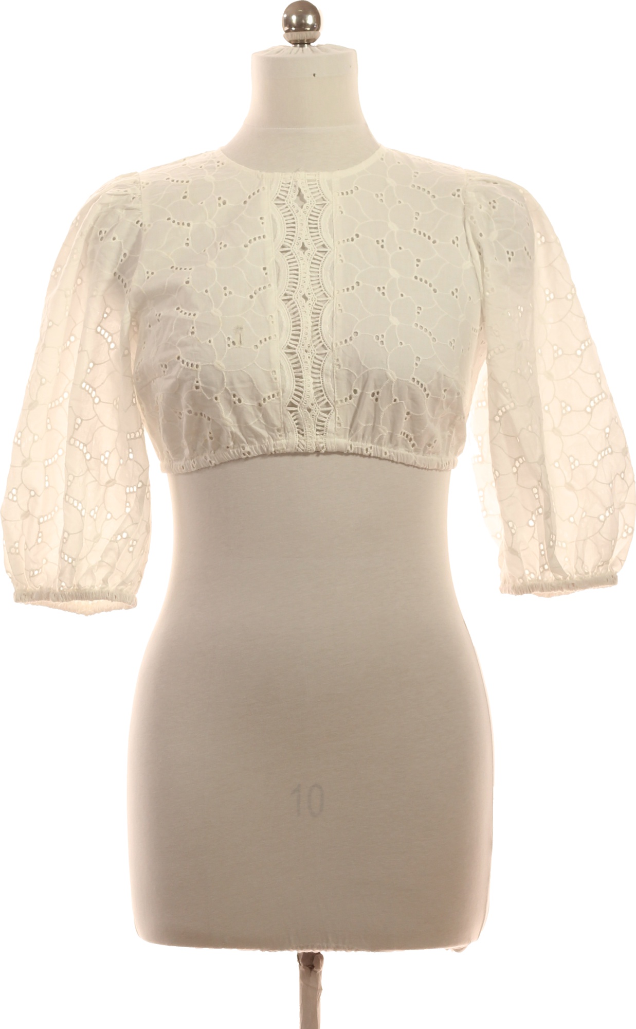 KRUGER Bílá bavlněná halenka s krátkým rukávem a madeirovým vzorem crop boho Vel. 38