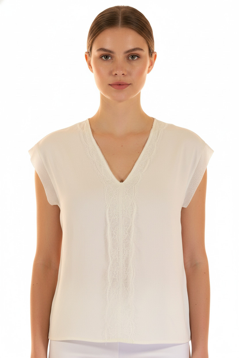 Next Bílá modalová společenská halenka s krátkým rukávem a výstřihem do V Vel. 42