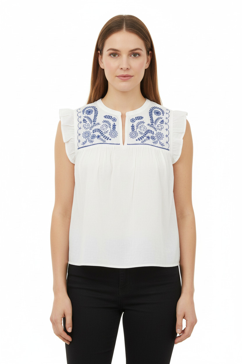 ONLY Bílá halenka s krátkým rukávem a výšivkou boho volná Vel. L