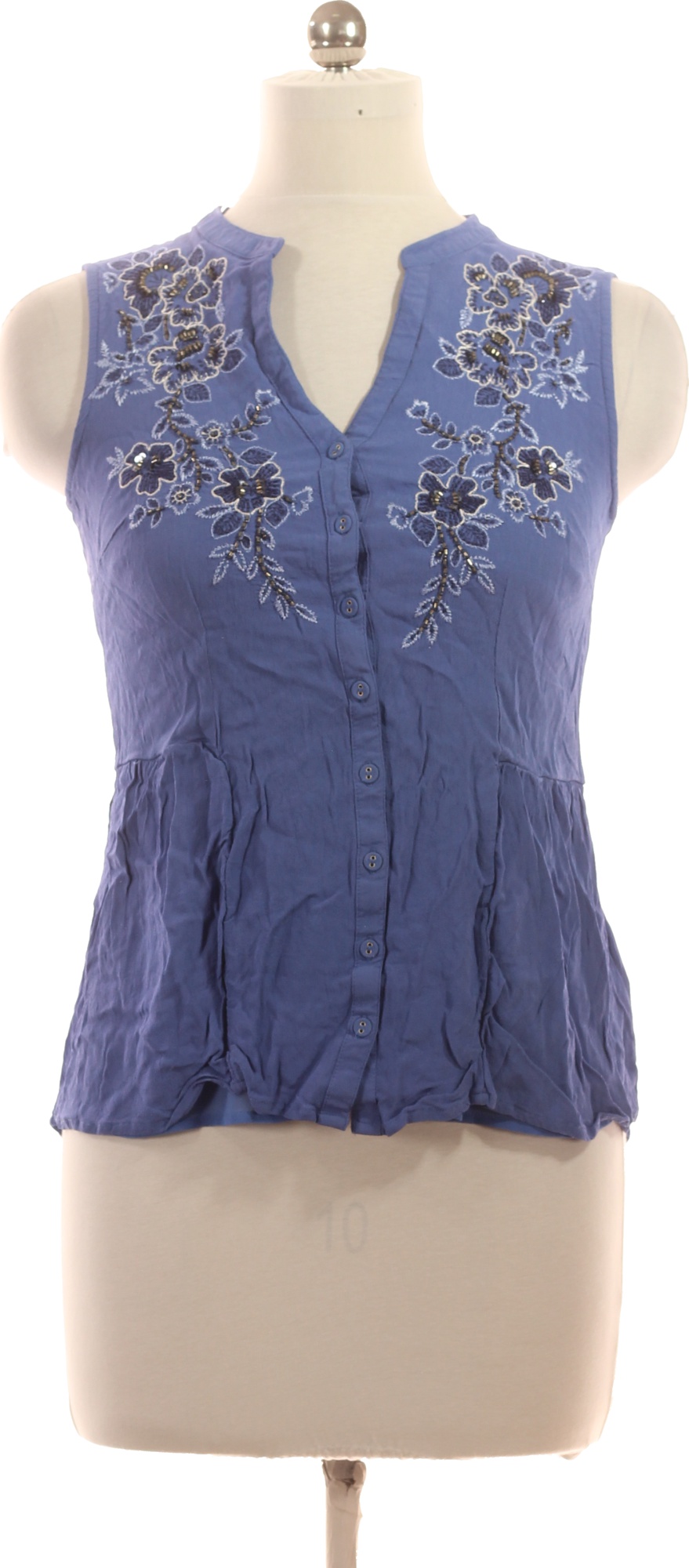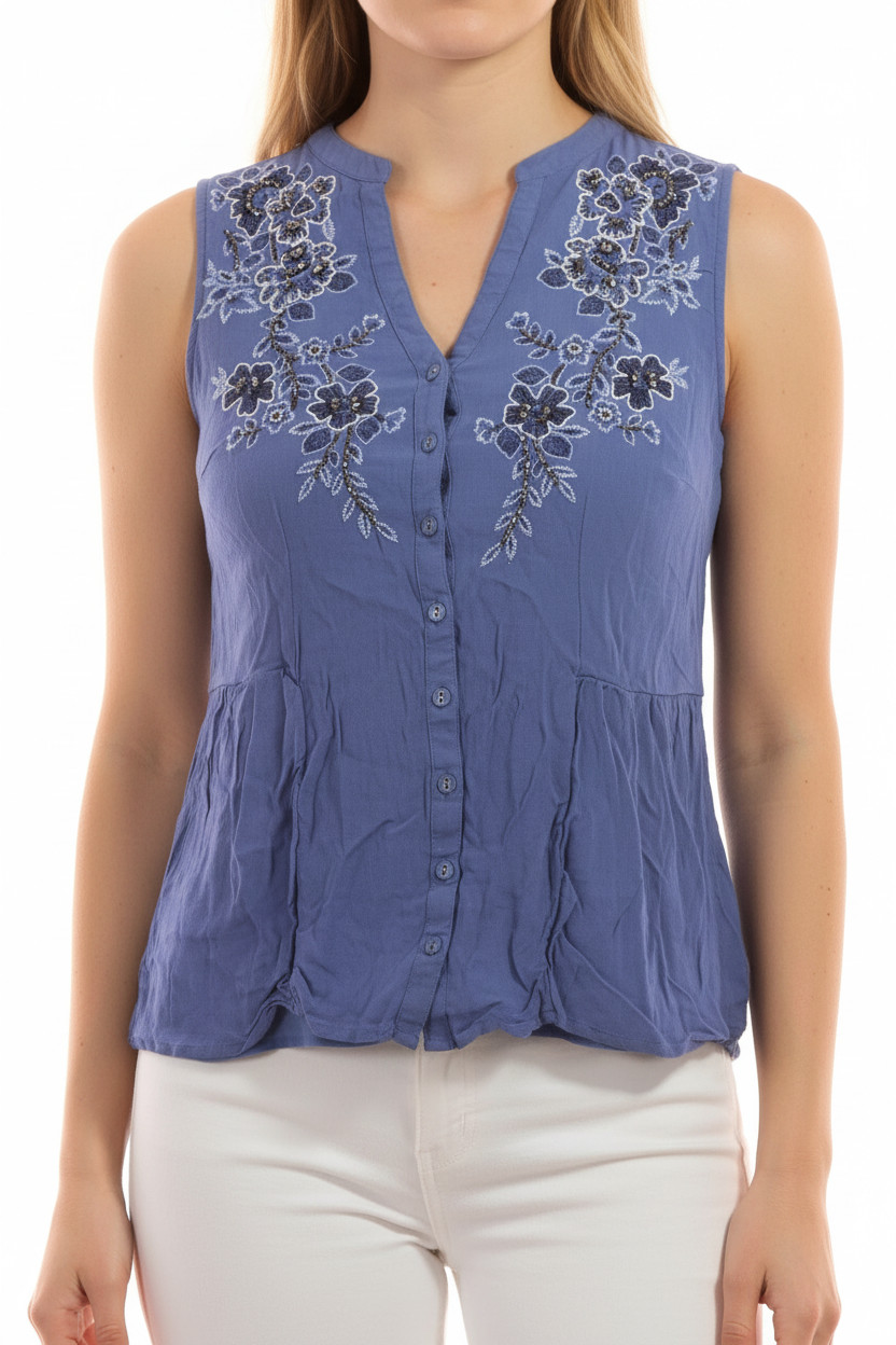 Per Una Dámská halenka bez rukávů modrá vyšívaná květinová Velikost EU 40
