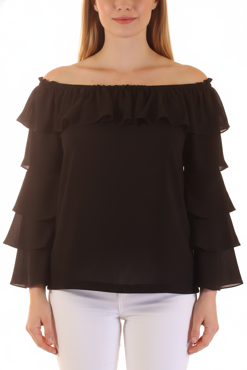 Joseph Ribkoff Černá halenka s dlouhým rukávem a volánky Velikost EU L
