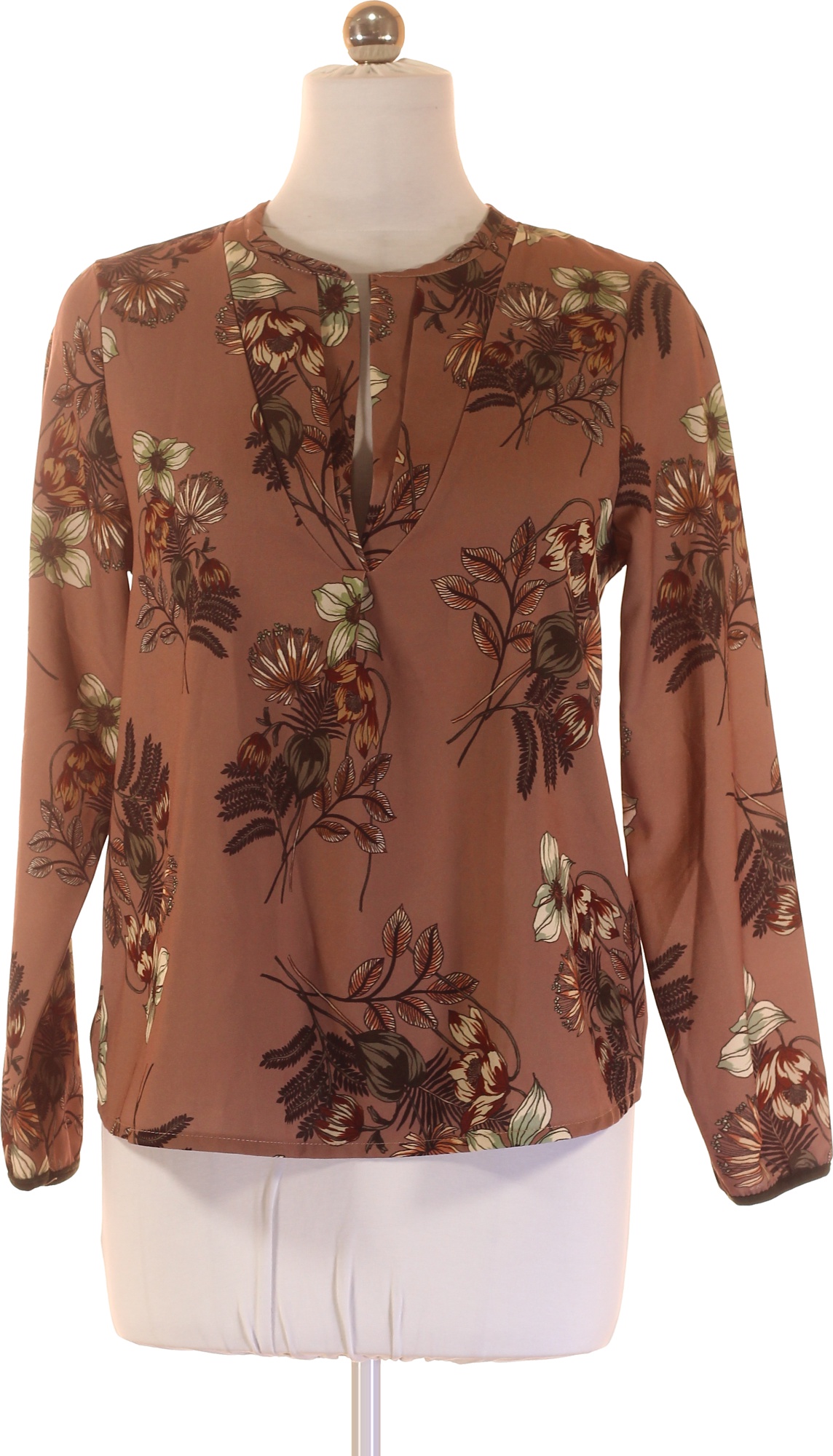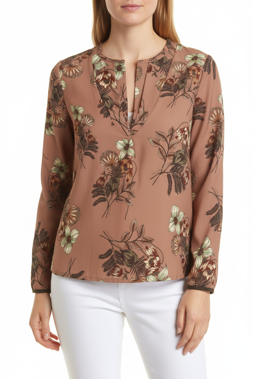 Please Dámská halenka s dlouhým rukávem a květinovým vzorem hnědá elegantní Velikost L