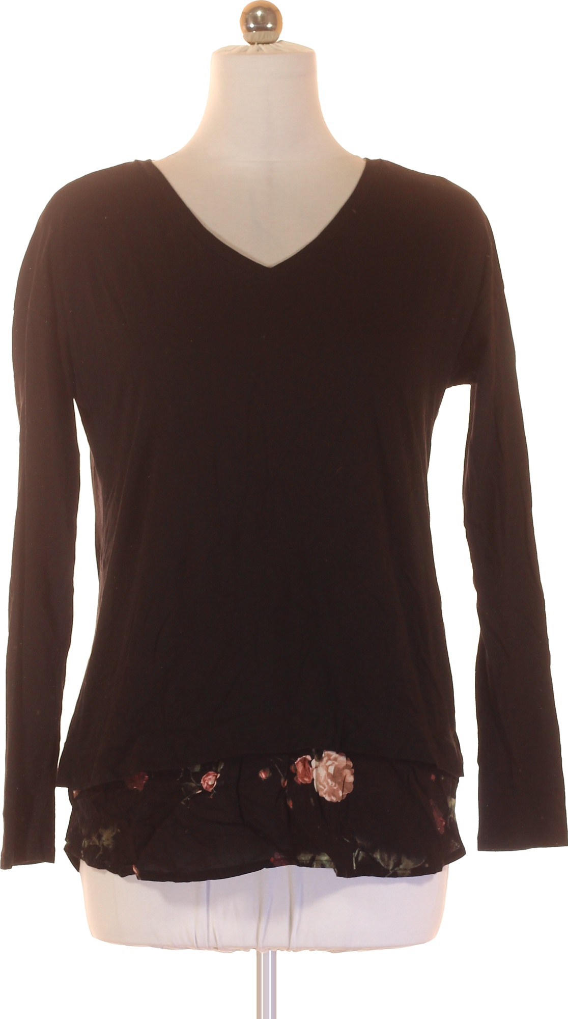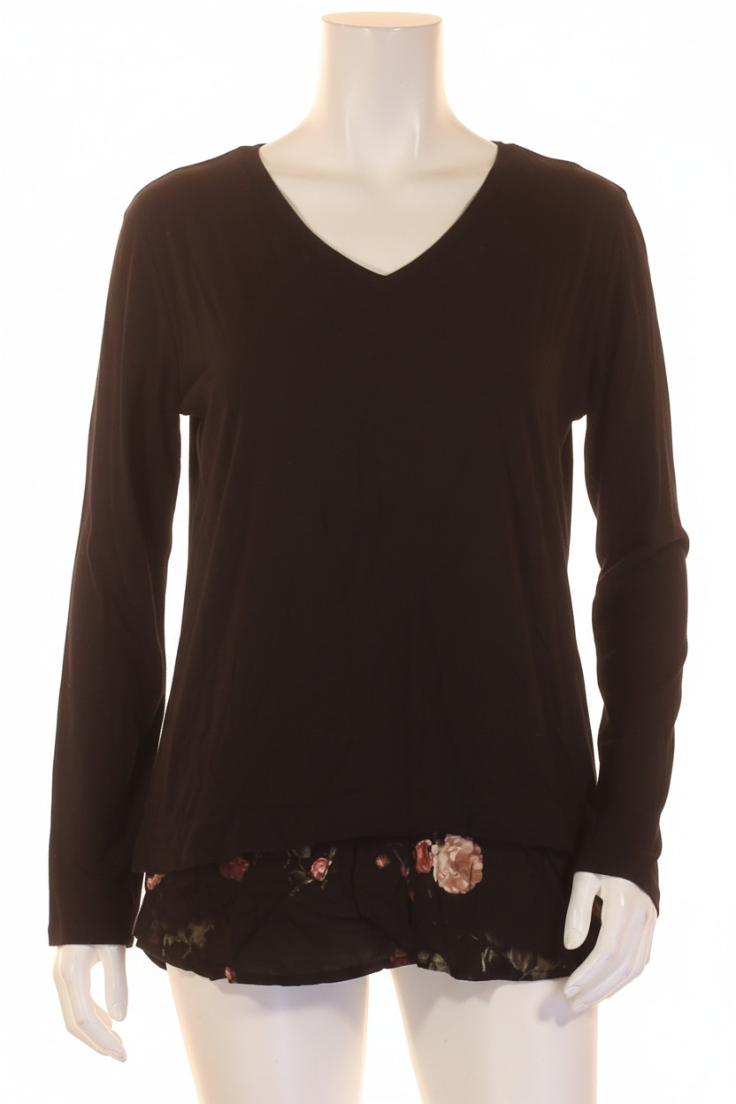 s.OLIVER Černá dámská halenka s dlouhým rukávem a květinovým volánem Velikost L