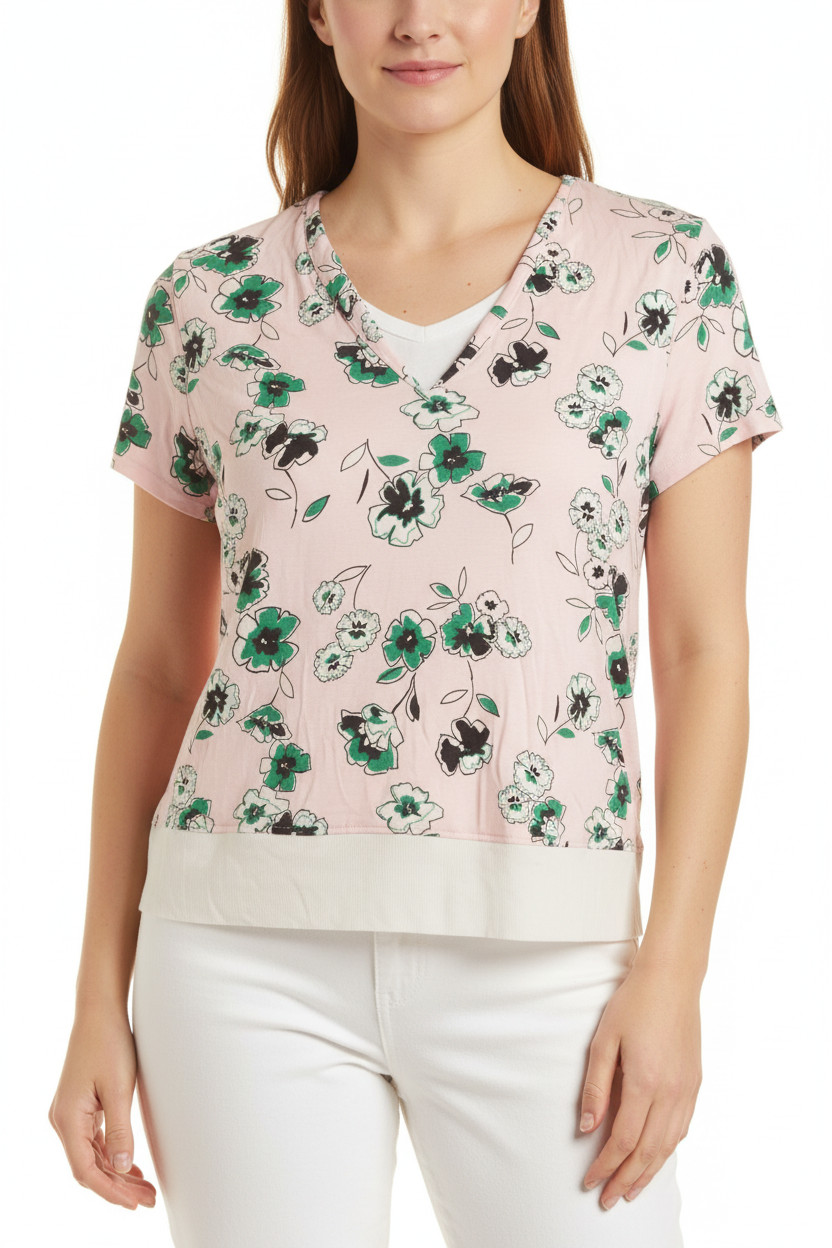 Marks & Spencer růžová halenka krátký rukáv květinová s potiskem Vel. EU 44