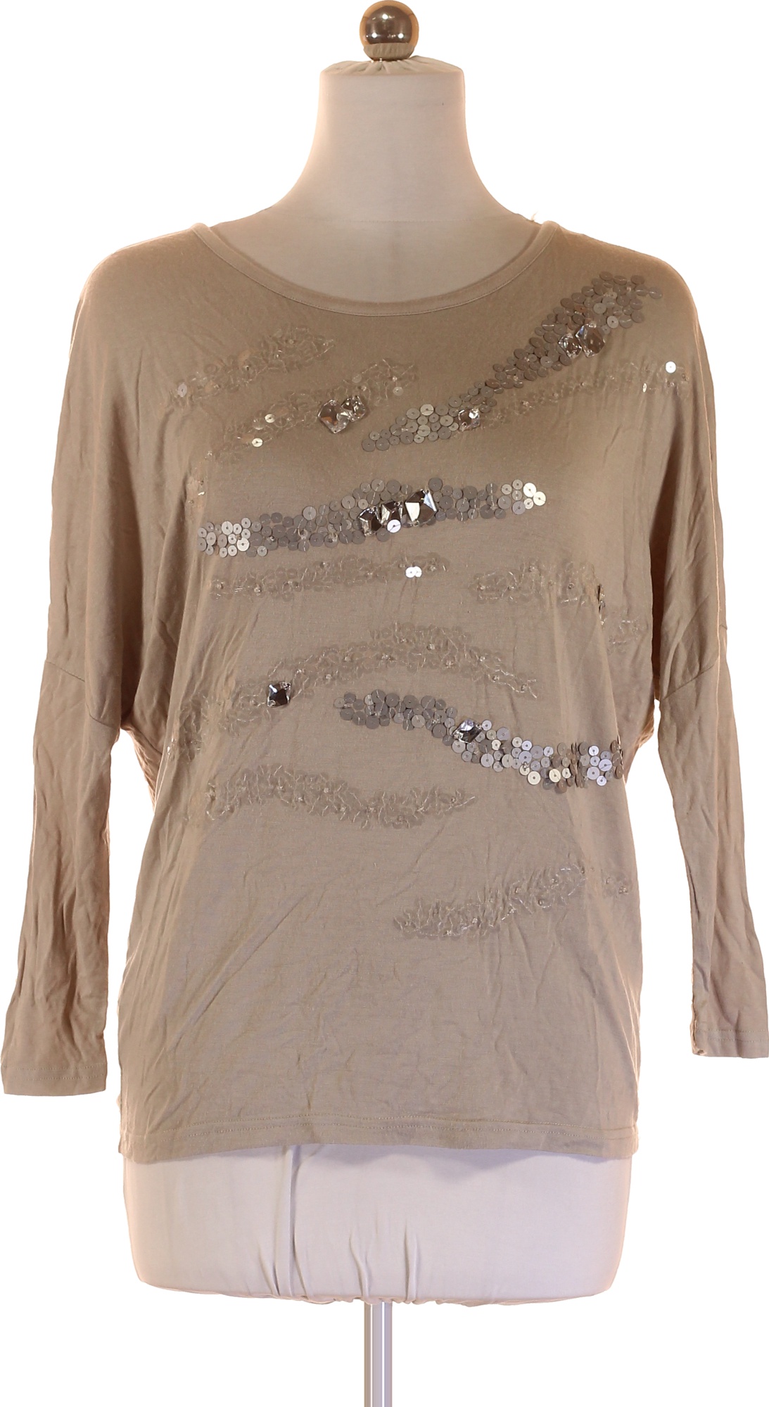 monnari Béžová halenka s flitry a kamínky volný střih 3/4 rukáv Vel. m