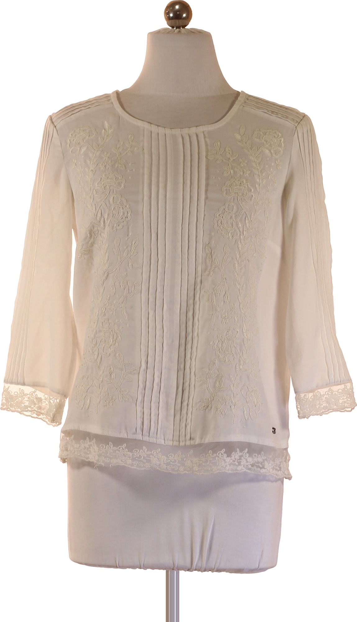 s.OLIVER Bílá halenka s 3/4 rukávem a krajkou vyšívaná Vel. 34