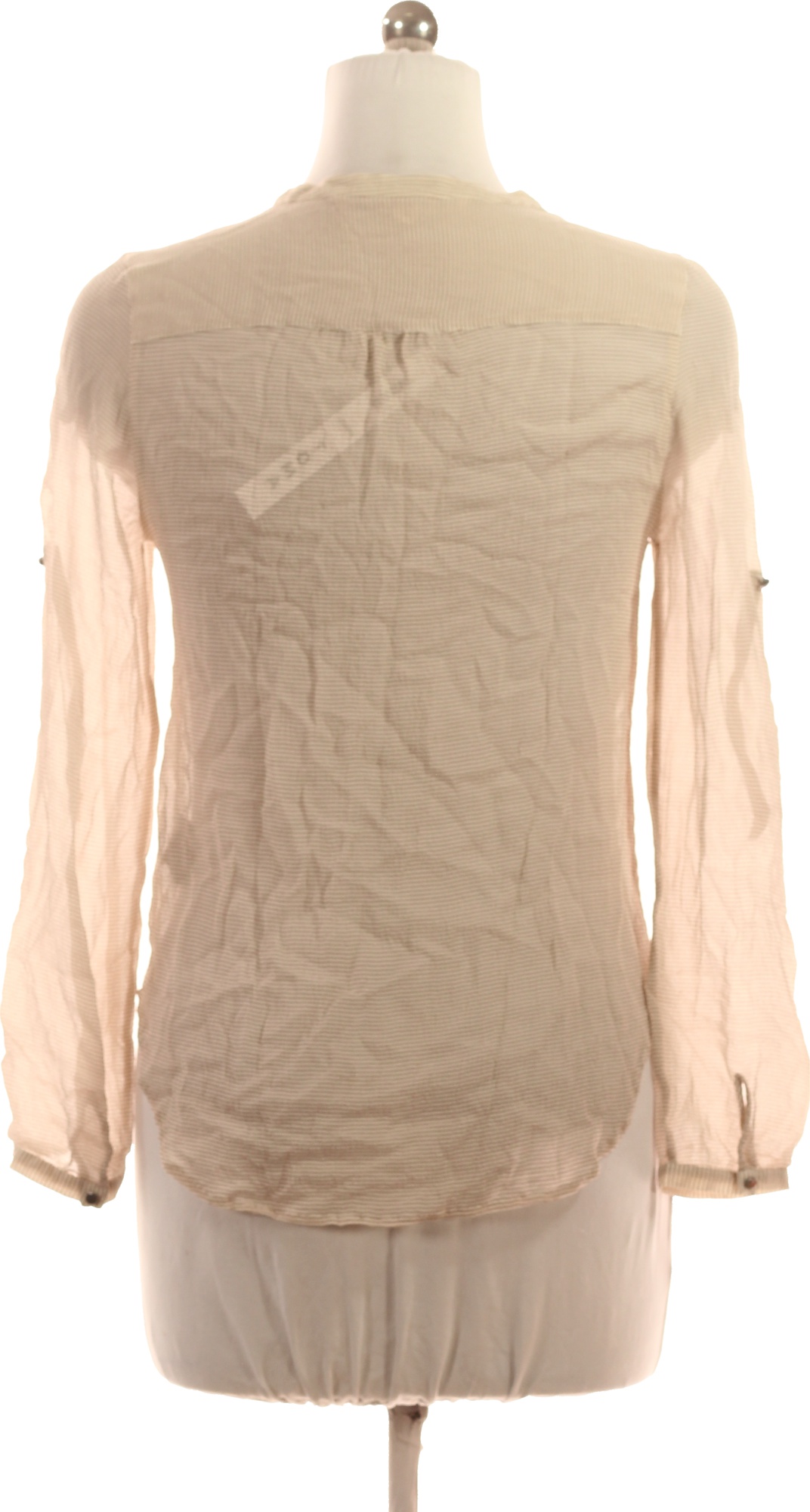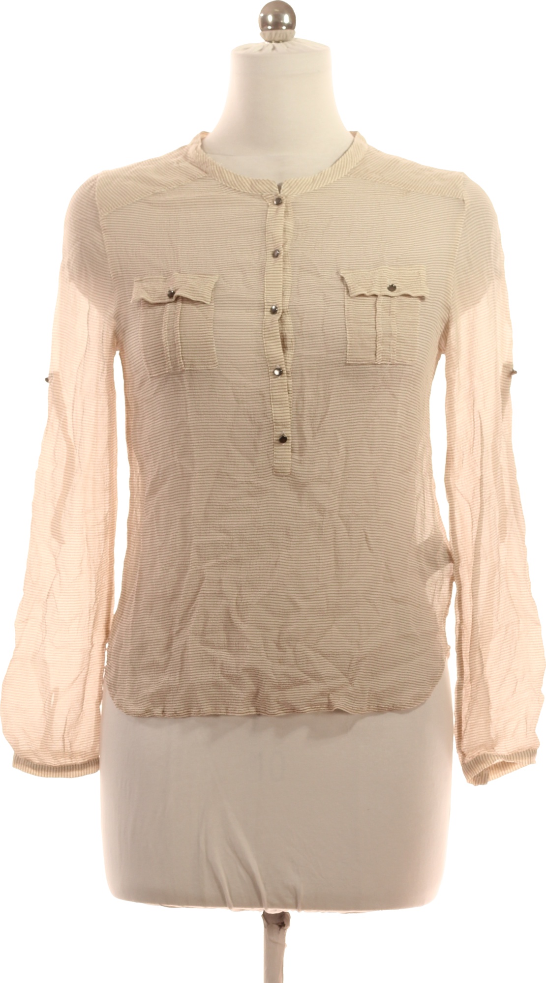 Custommade Dámská viskózová halenka béžová pruhovaná průsvitná s kapsami Vel. EU M