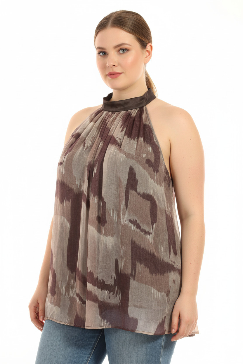 Dámská halenka bez rukávů vzorovaná průsvitná letní Velikost DE 50