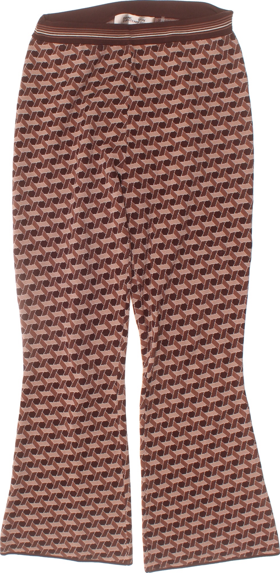DIANE von FURSTEBERG dámské volnočasové kalhoty hnědé s potiskem zvonové Velikost S