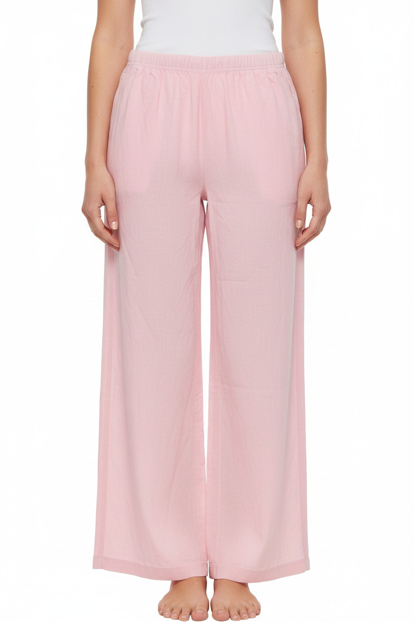Bershka Dámské lněné kalhoty široké volnočasové růžové Vel. M
