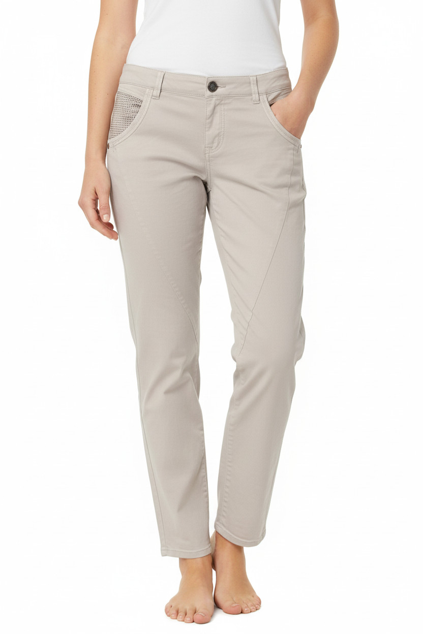 Mos Mosh Dámské bavlněné kalhoty béžové ležérní s kapsami nad kotníky Vel. 28