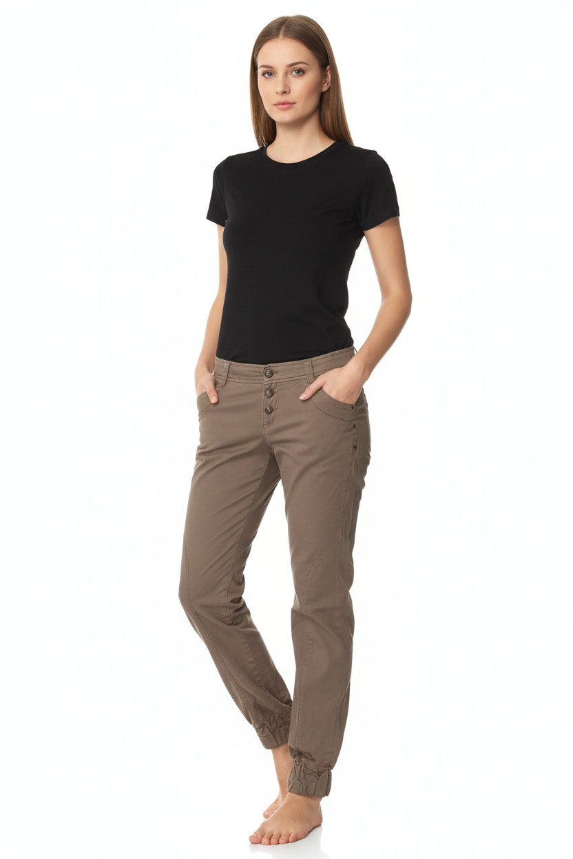 OBJECT Dámské bavlněné volnočasové jogger kalhoty s kapsami a knoflíky Velikost EU 36