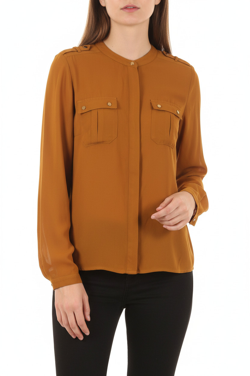Dámská oranžová košile s dlouhým rukávem a nárameníky Velikost 36