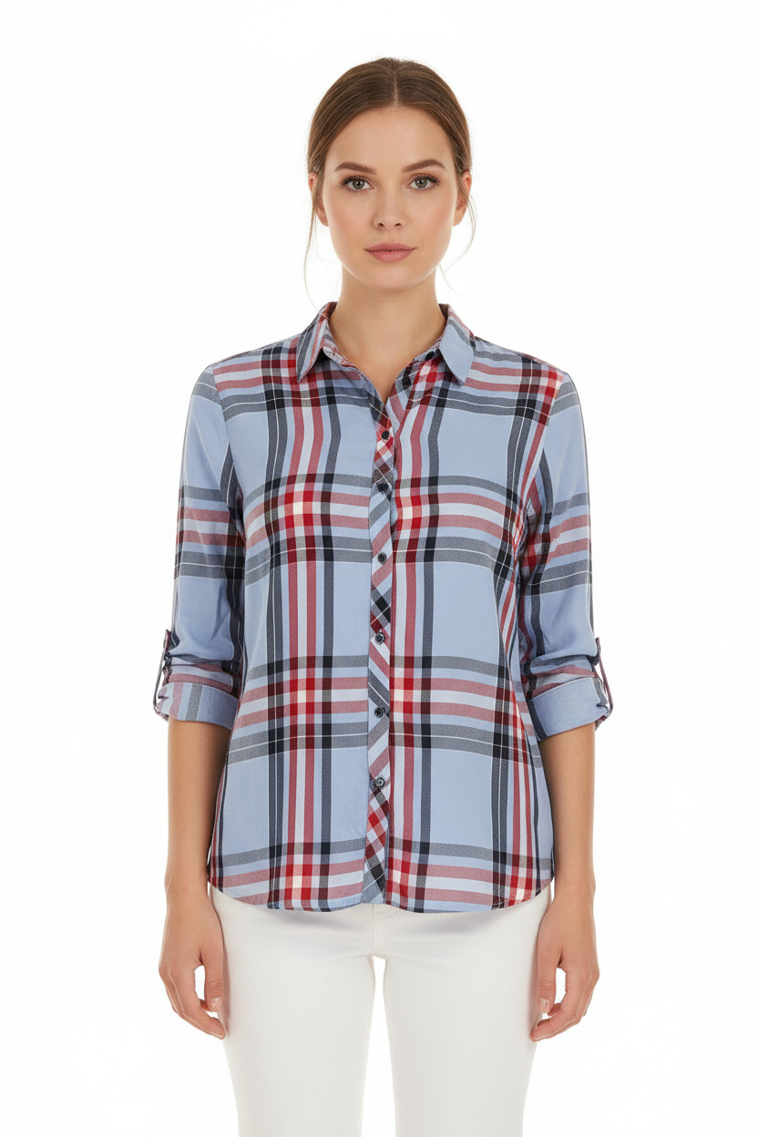 Orsay Dámská modro-červená kostkovaná košile s dlouhým rukávem ležérní regular fit Vel. L