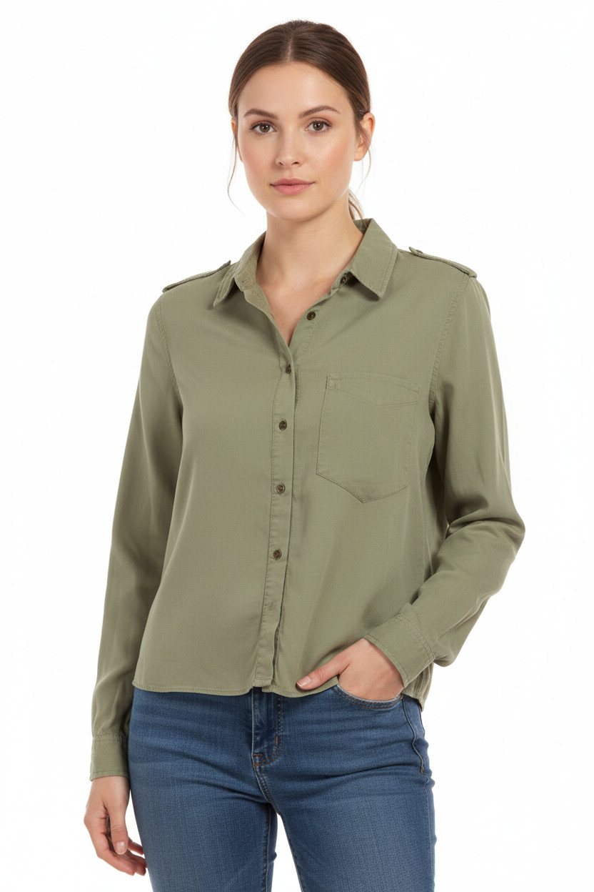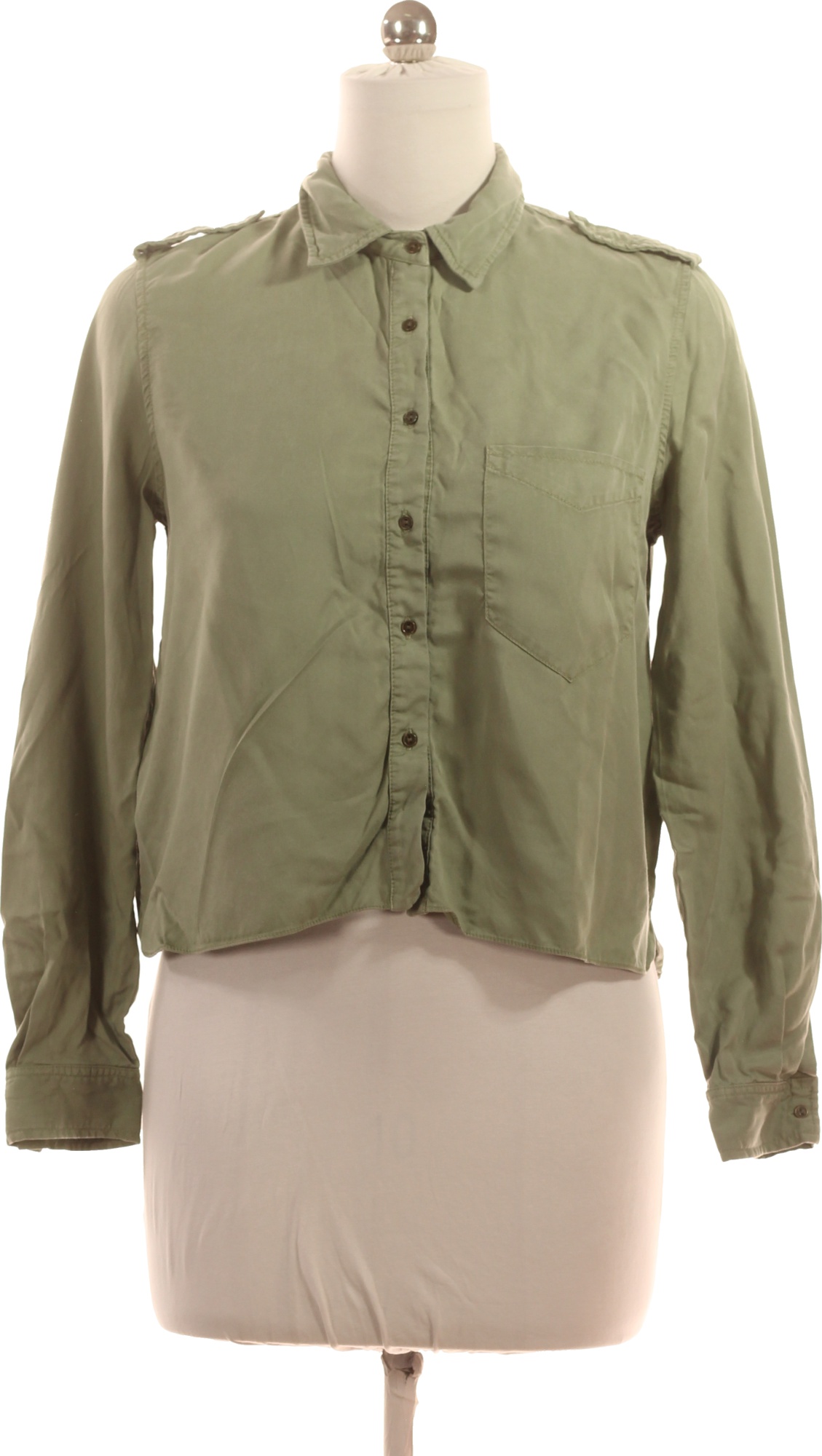 ZARA Zelená dámská košile s dlouhým rukávem a nárameníky ležérní crop Velikost m