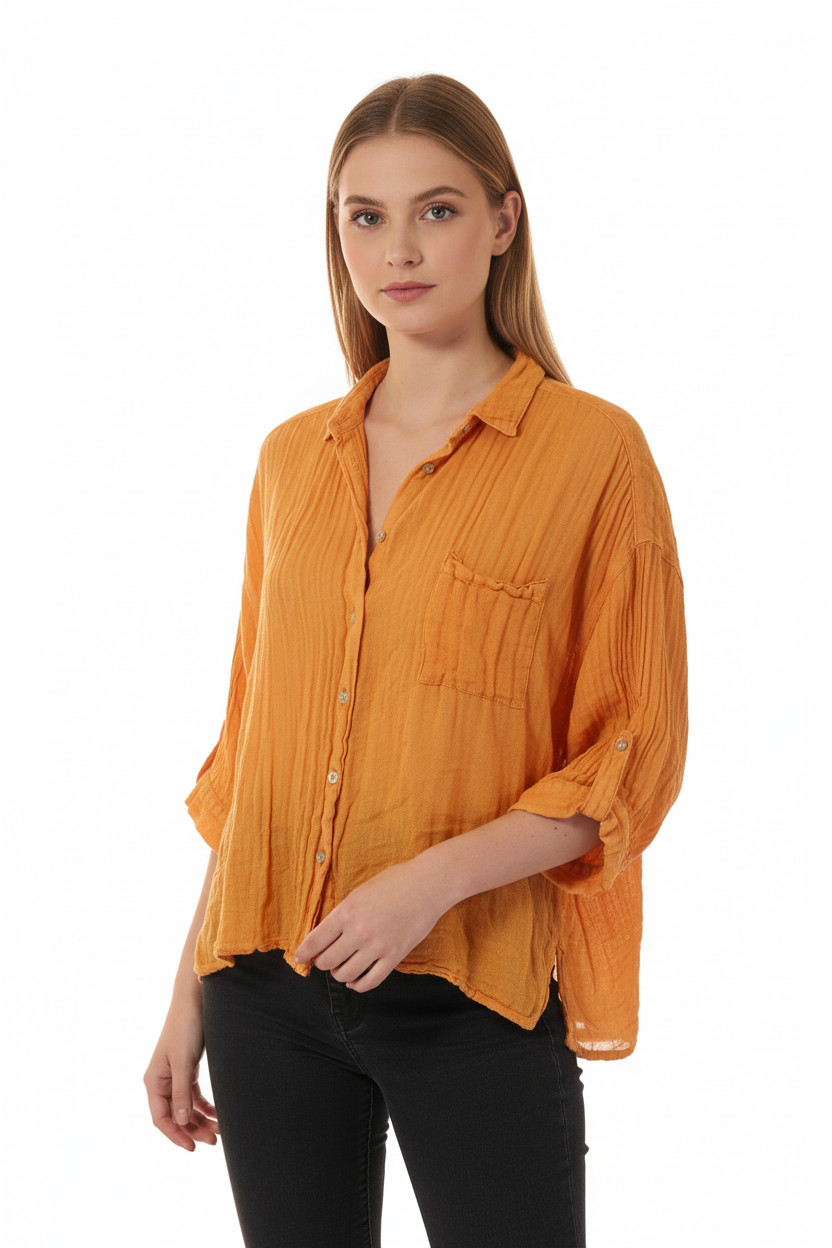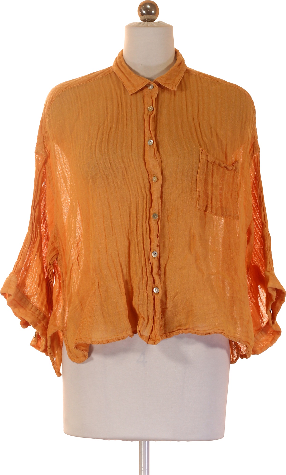 Oranžová košile krátký rukáv volná ležérní letní průhledná Vel. S