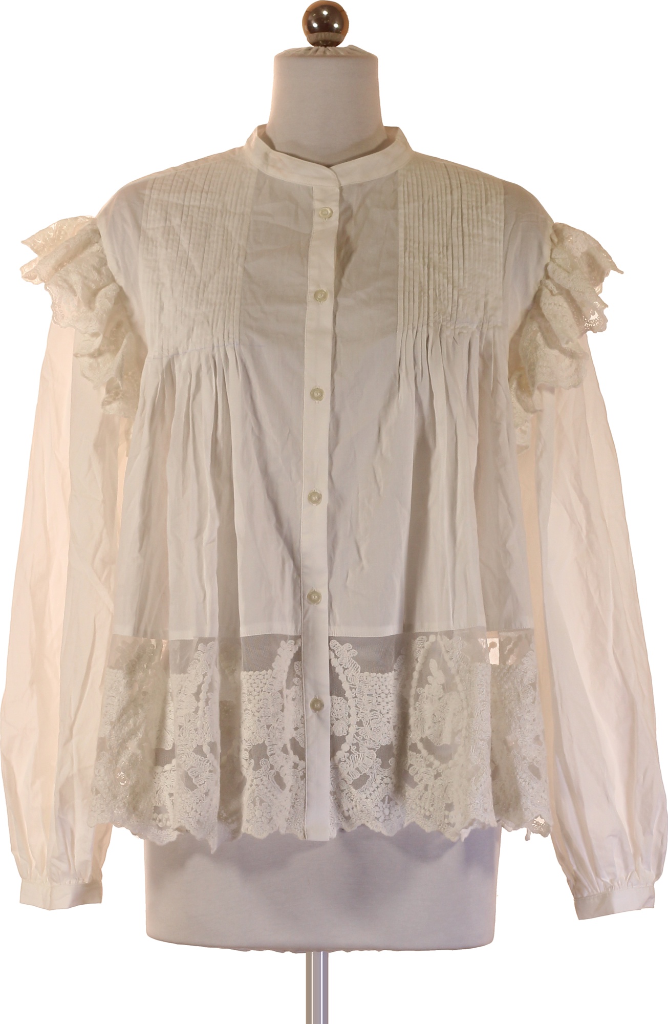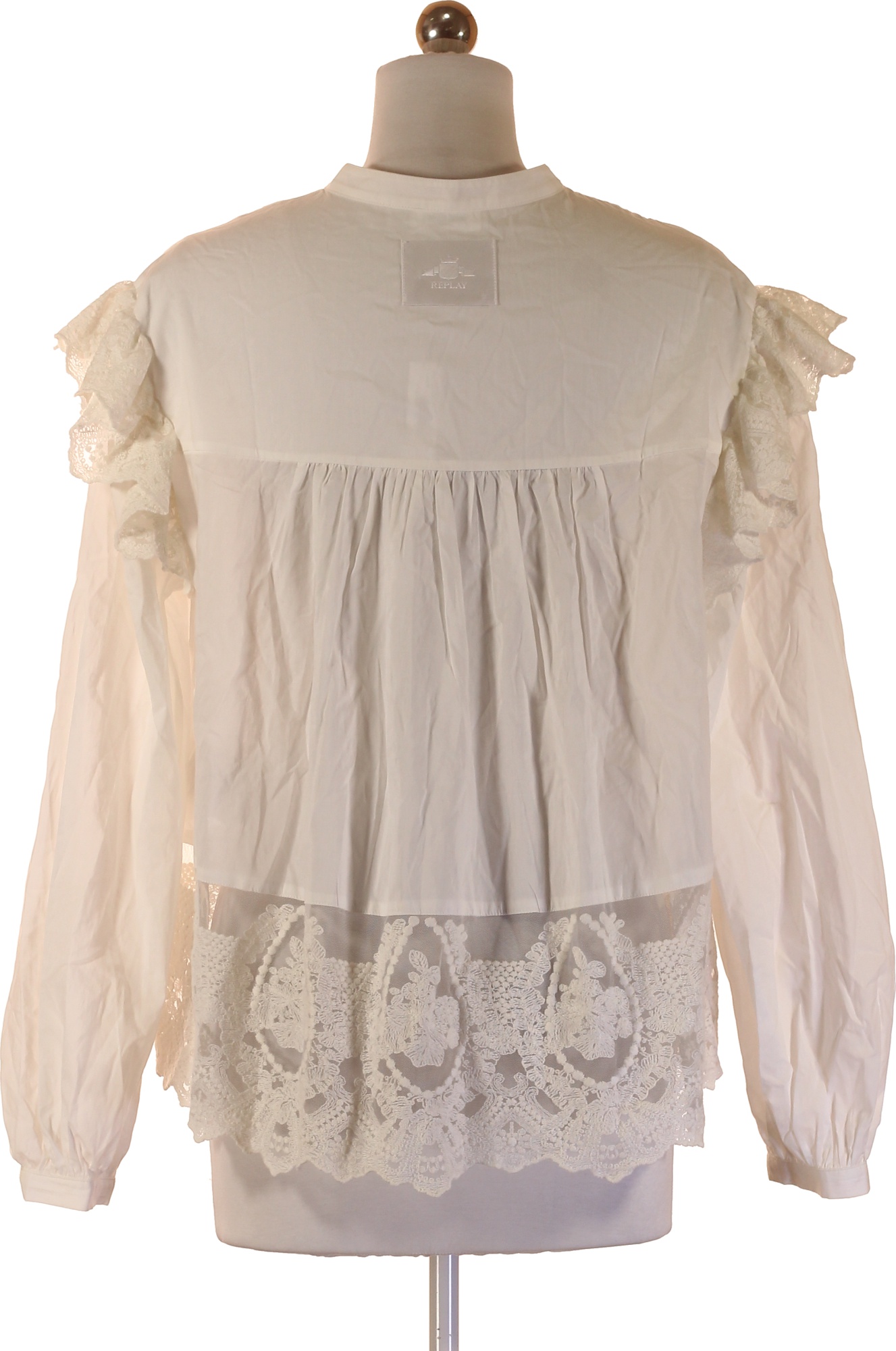 REPLAY Dámská bílá košile s dlouhým rukávem a krajkou Velikost s