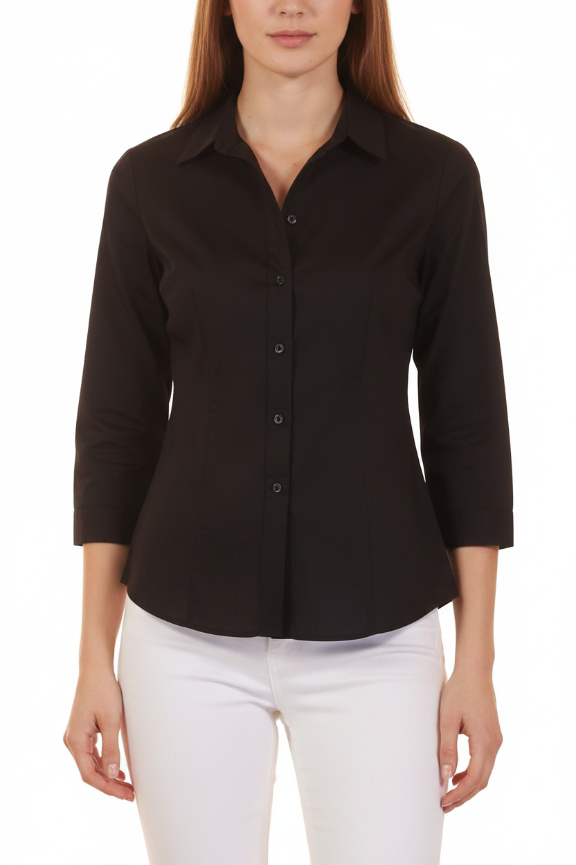 Marks & Spencer Dámská elegantní letní košile vypasovaná polyesterová černá Vel. 36