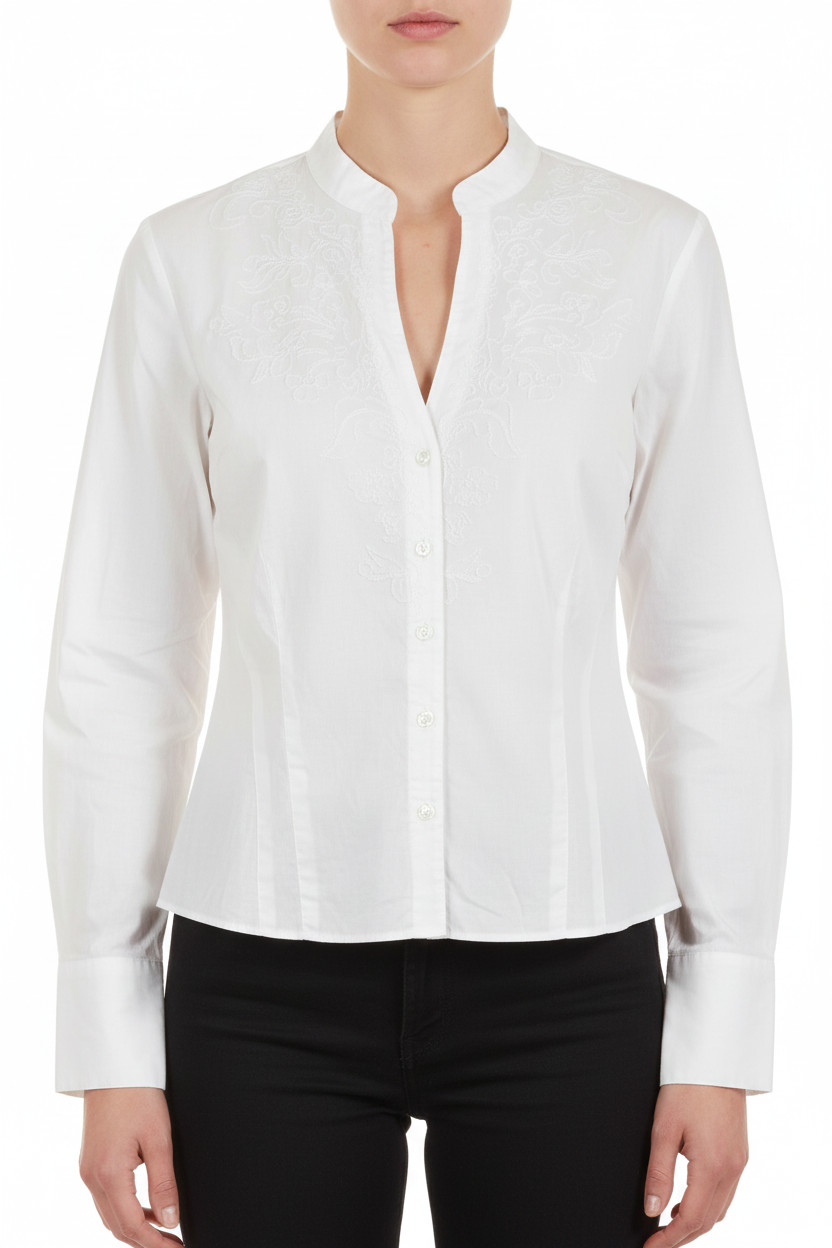 Mexx Bílá bavlněná košile s výšivkou a stojáčkem elegantní s prodlouženým rukávem Vel. 38