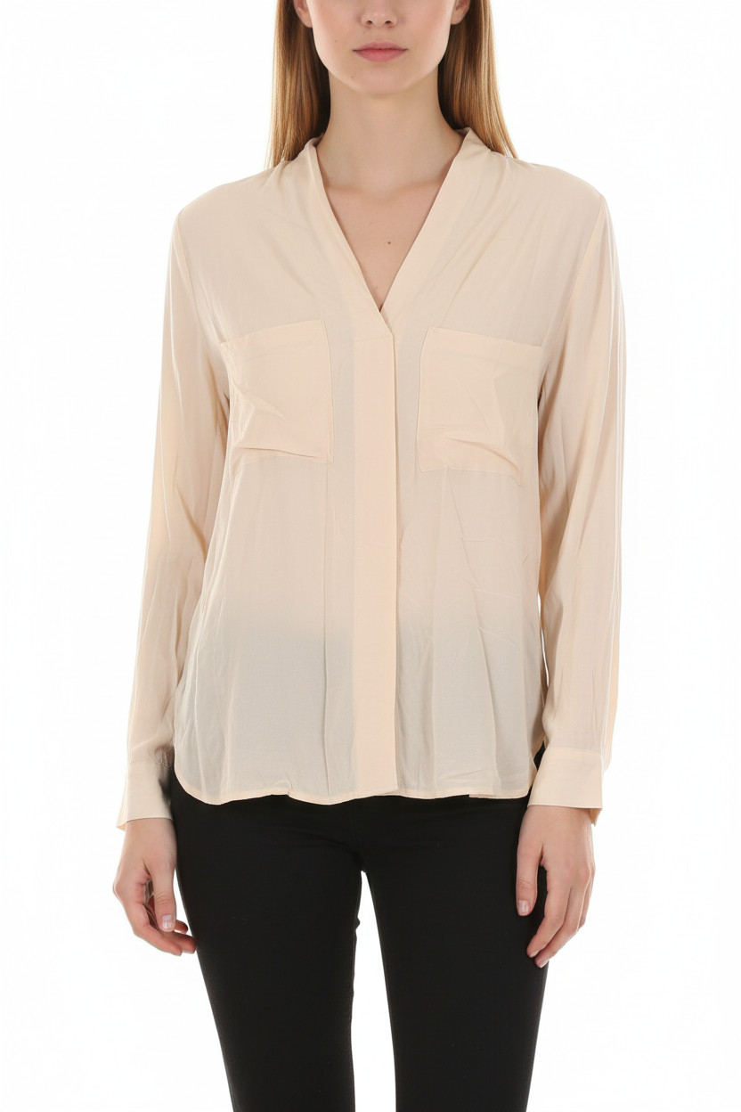 NOA NOA Dámská béžová košile dlouhý rukáv elegantní volná s náprsními kapsami Vel. 38