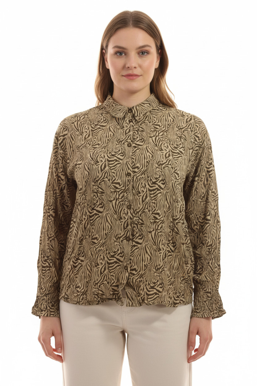 MSCH copenhagen Dámská viskózová košile dlouhý rukáv zebra vzorovaná ležérní béžová Vel. S/M