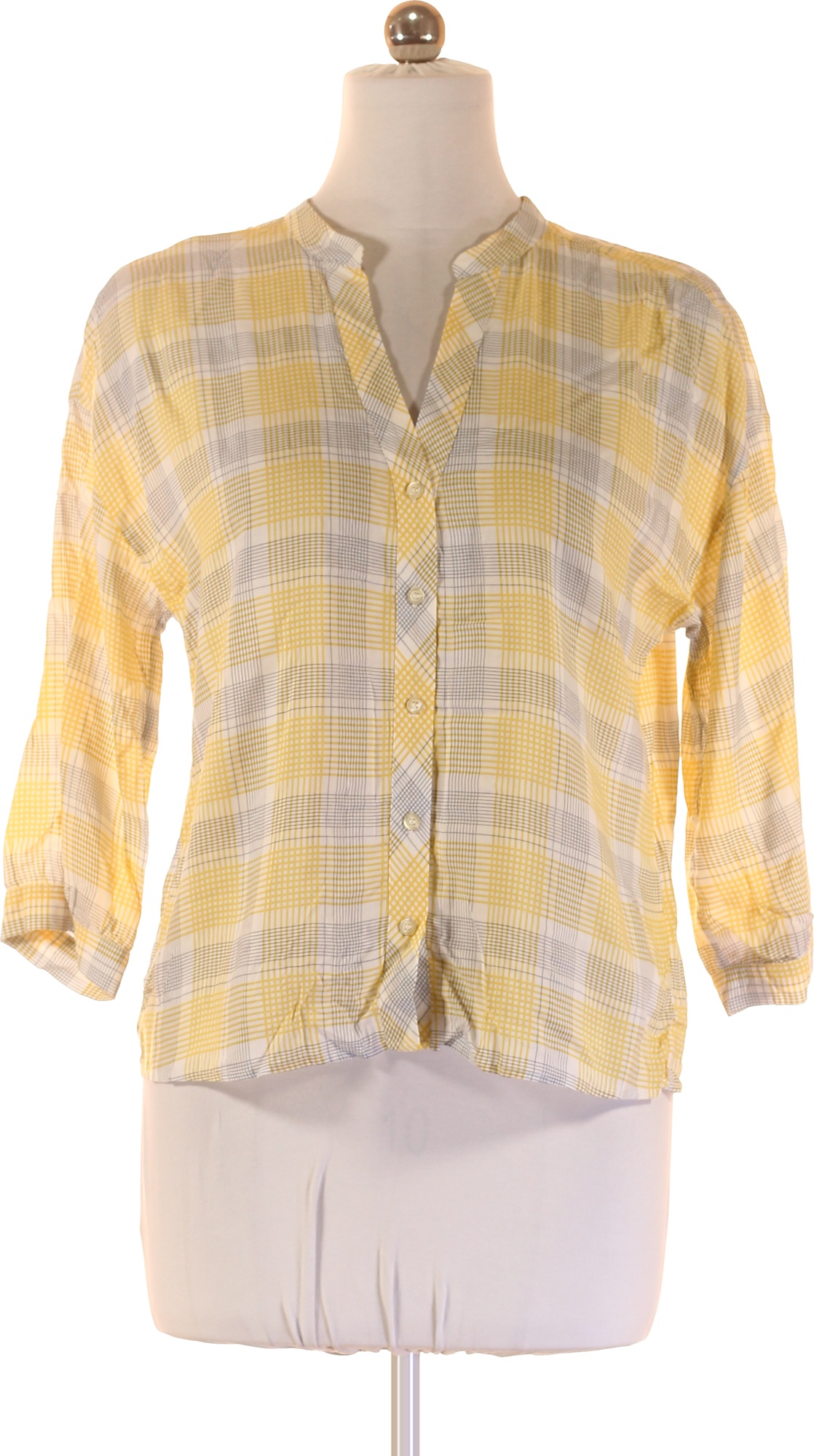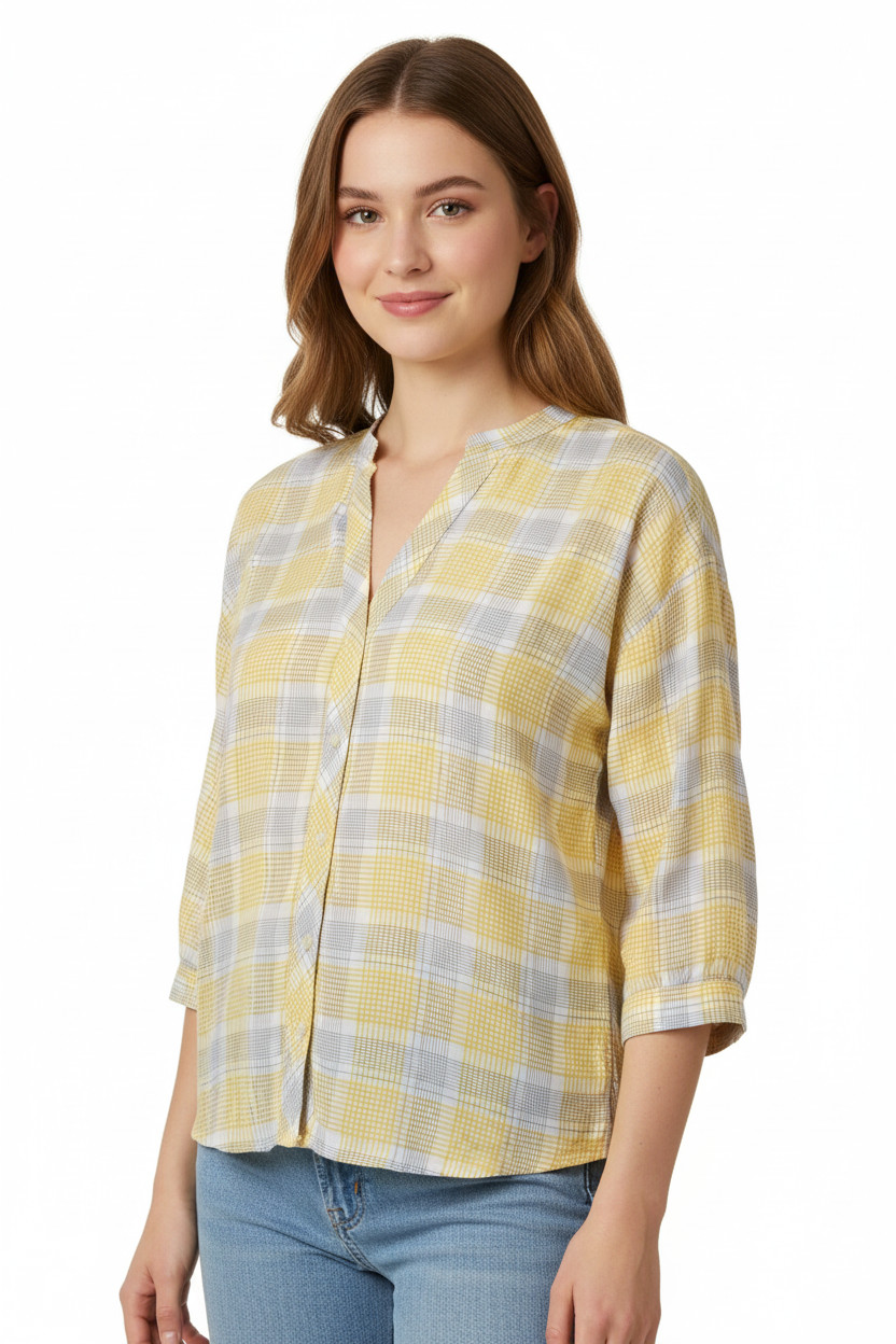 OPUS Dámská viskózová žlutá kostkovaná volná košile 3/4 rukáv ležérní Vel. 38