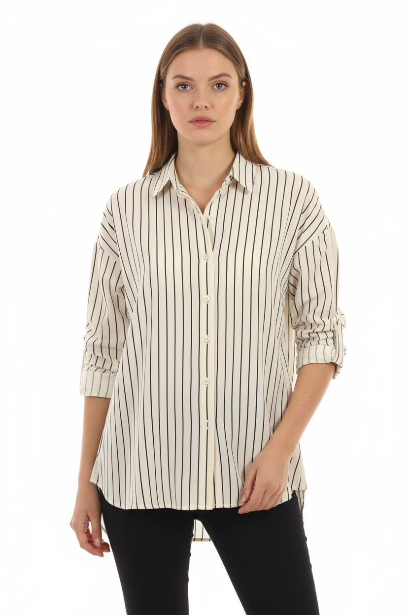 Seidensticker Dámská bavlněná košile krémová pruhovaná volná ležérní Velikost 38