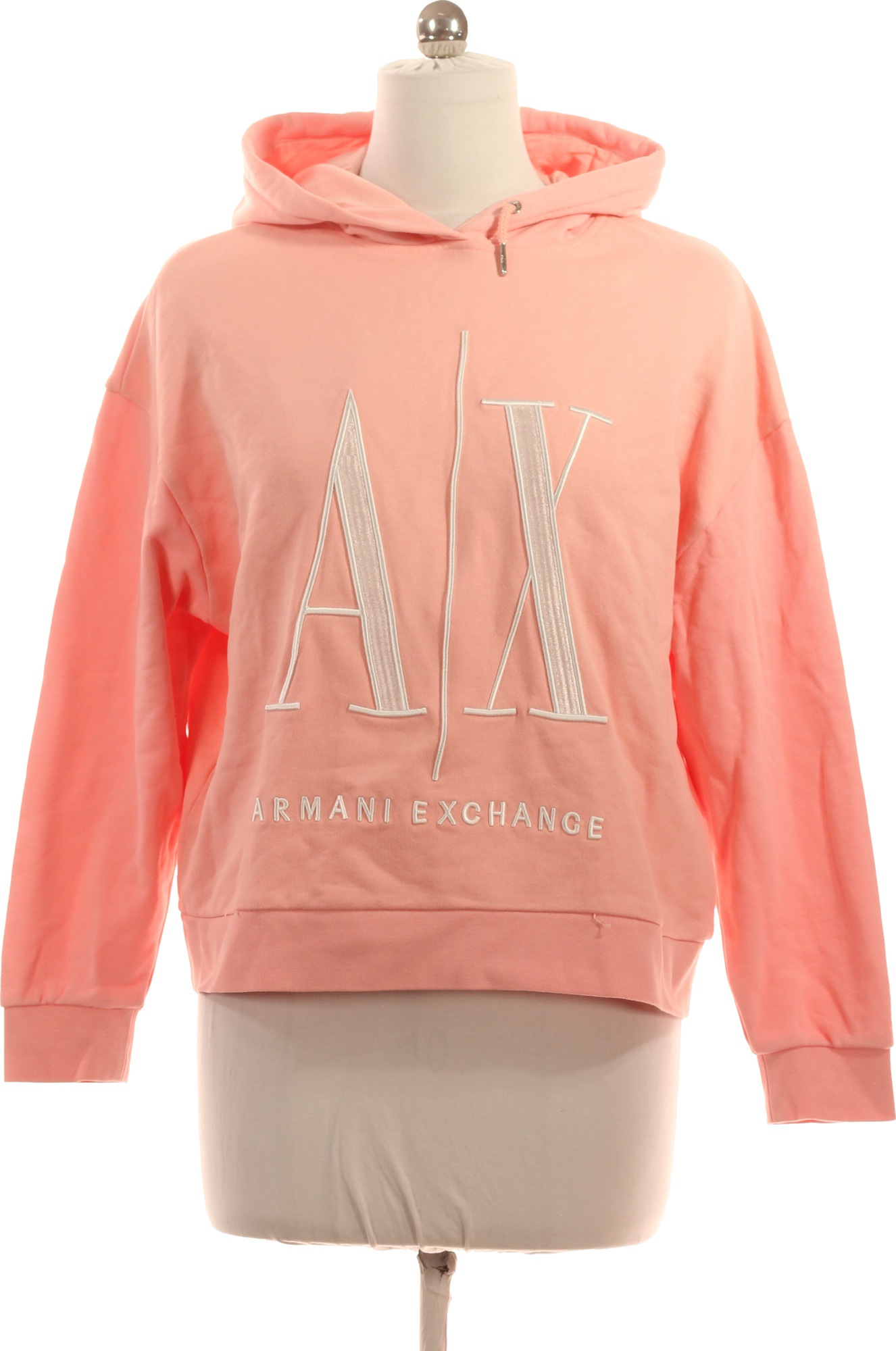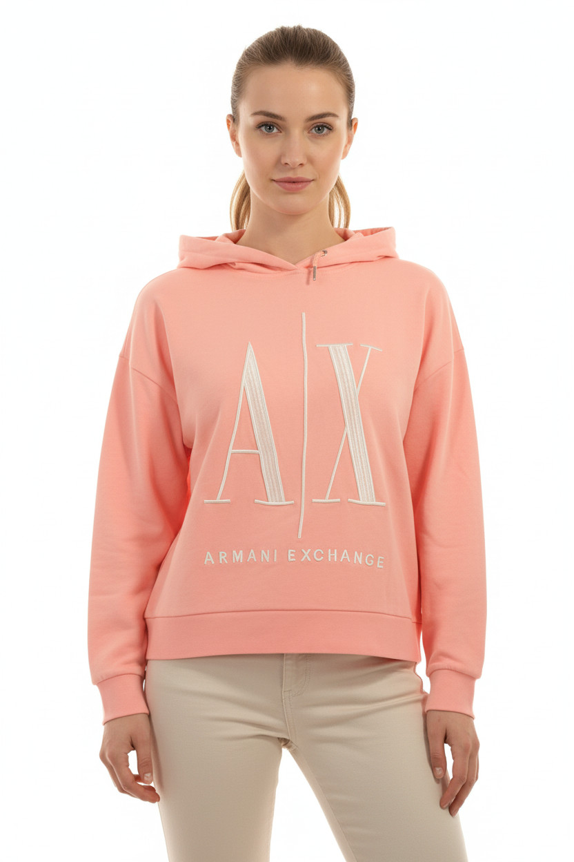ARMANI růžová bavlněná mikina s kapucí a výšivkou Velikost l