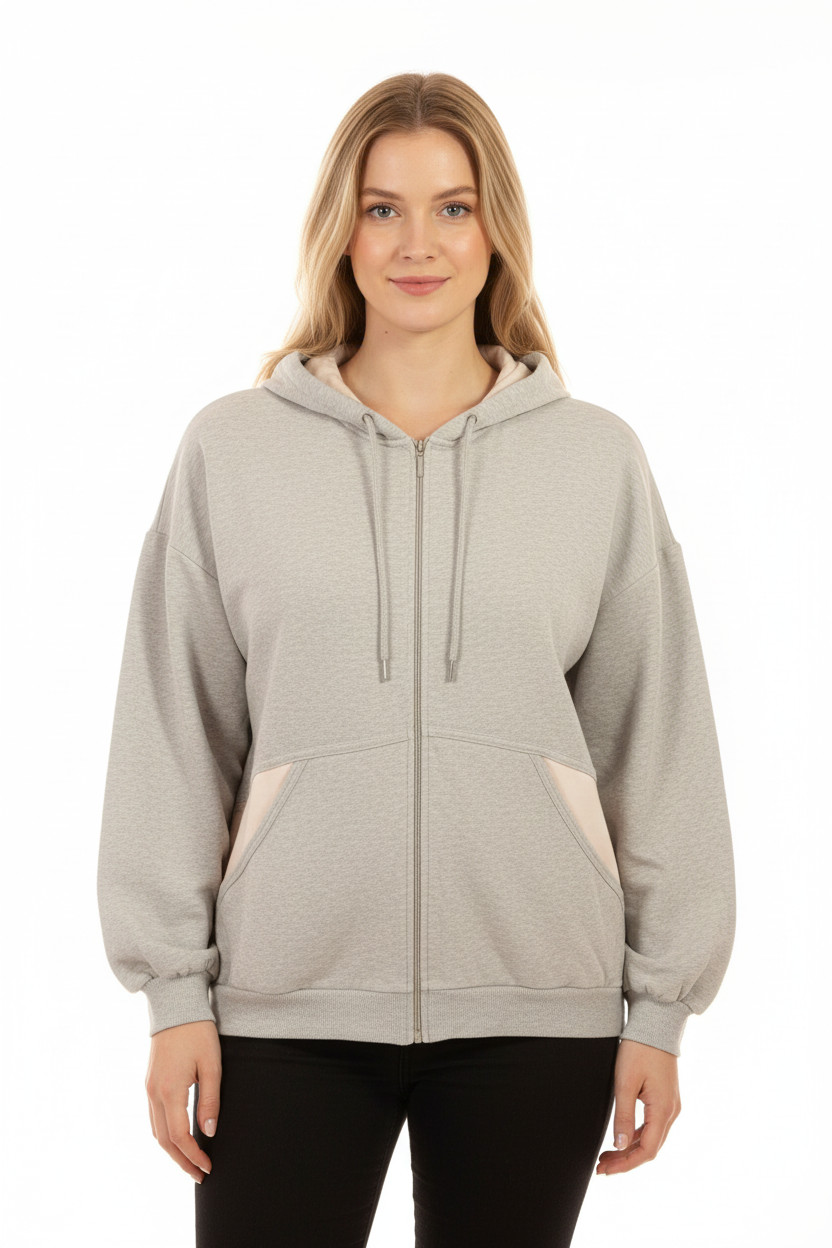 CALIDA Dámská bavlněná mikina s kapucí na zip šedá jednobarevná streetwear Vel. L