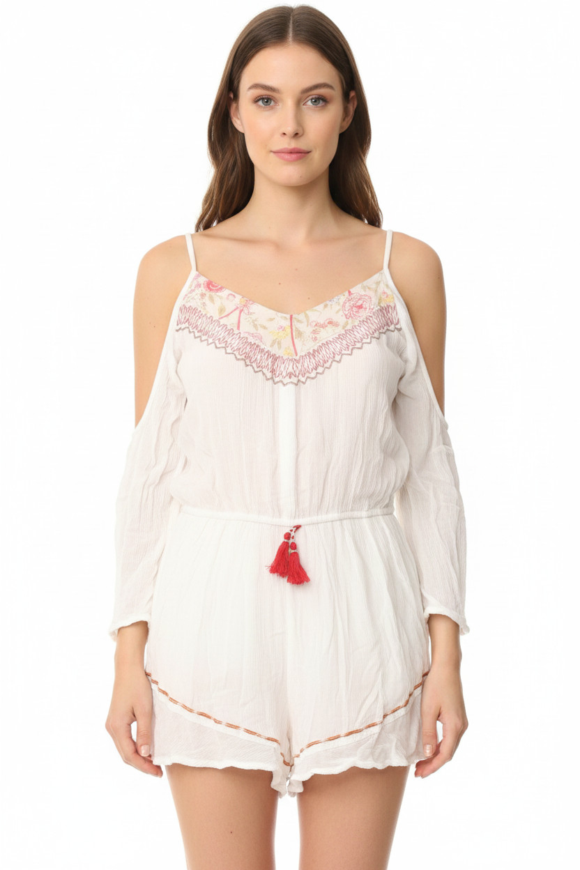 band of gypsies dámský bílý bavlněný overal s dlouhým rukávem a potiskem Vel. M