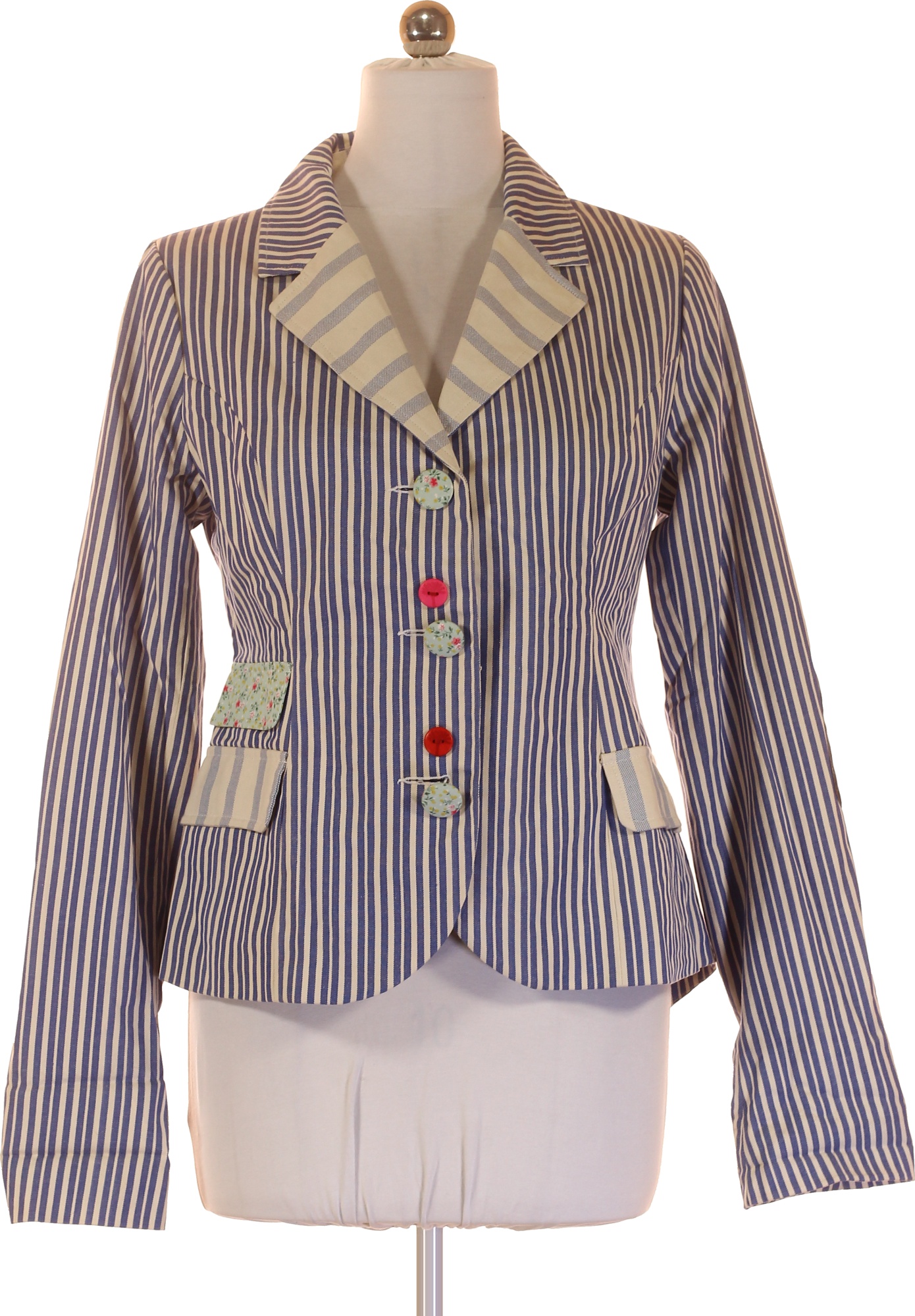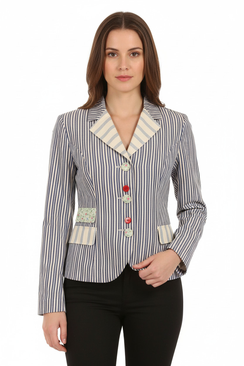 Joe Browns Bavlněné sako dámské modré pruhované vypasované sako na běžné nošení Vel. 40