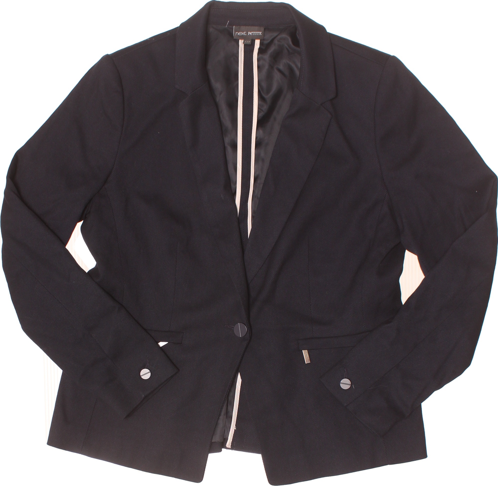 Next Dámské černé polyesterové vypasované sako elegantní jednořadé s jedním knoflíkem Velikost EU 42