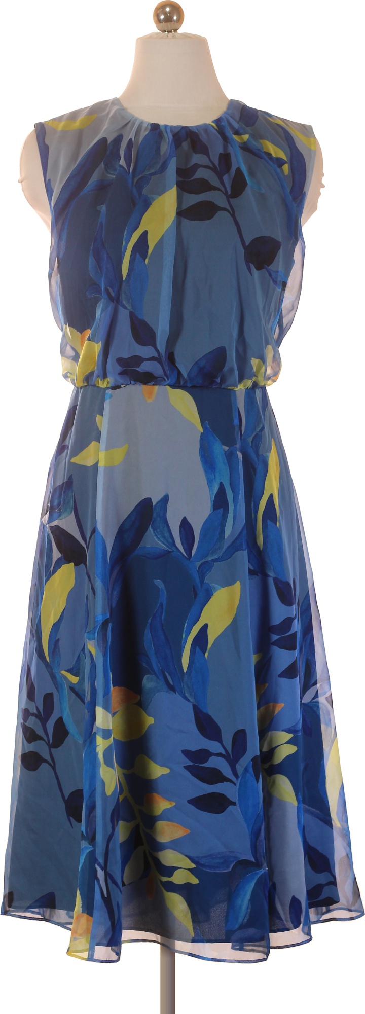 modré květované šaty bez rukávů letní volnočasové Vel. 38