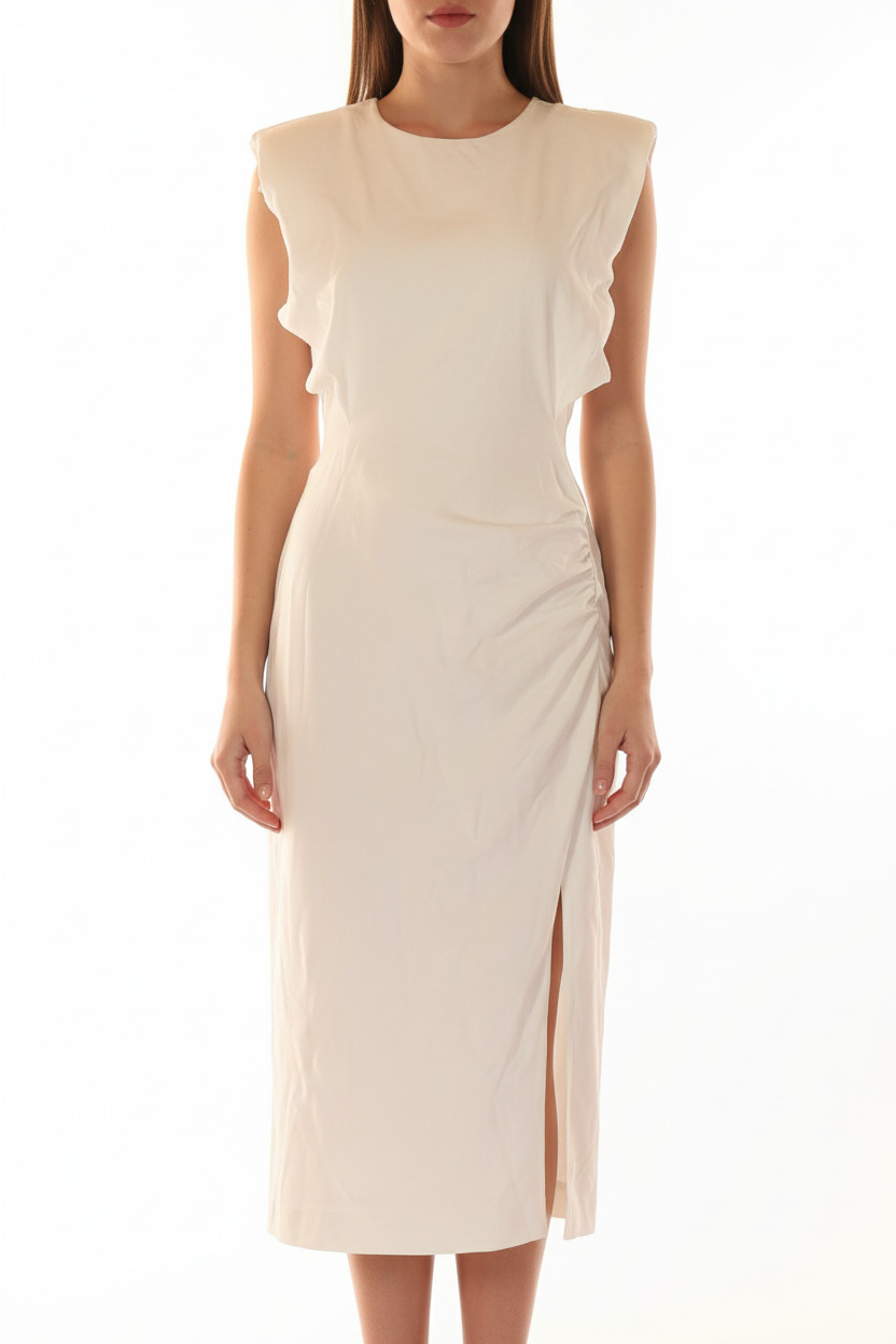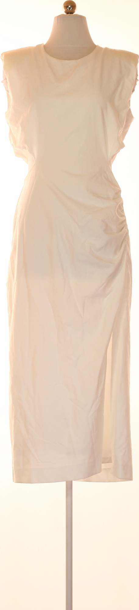 Dámské šaty bez rukávů dlouhé elegantní bílé polyesterové s rozparkem Vel. M