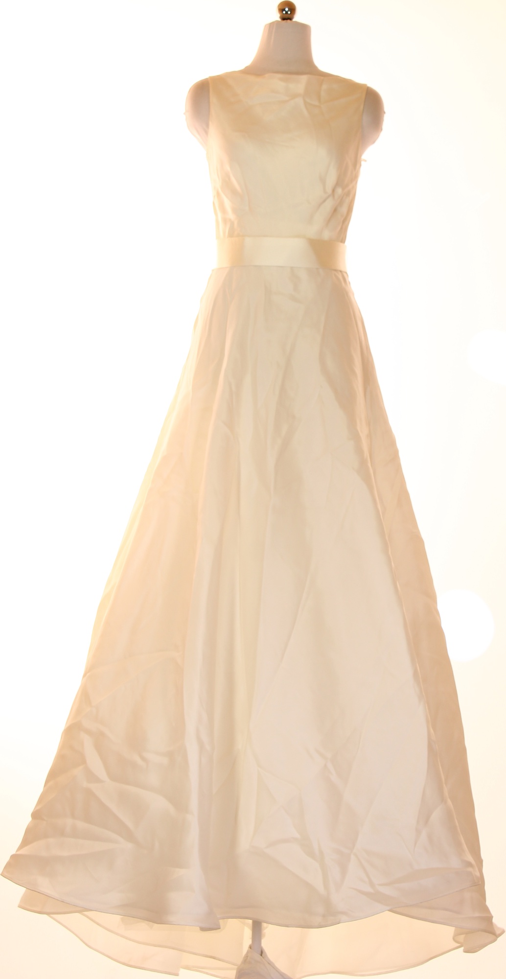 Dlouhé svatební šaty bez rukávů hedvábné saténové jednoduché béžové Velikost 44