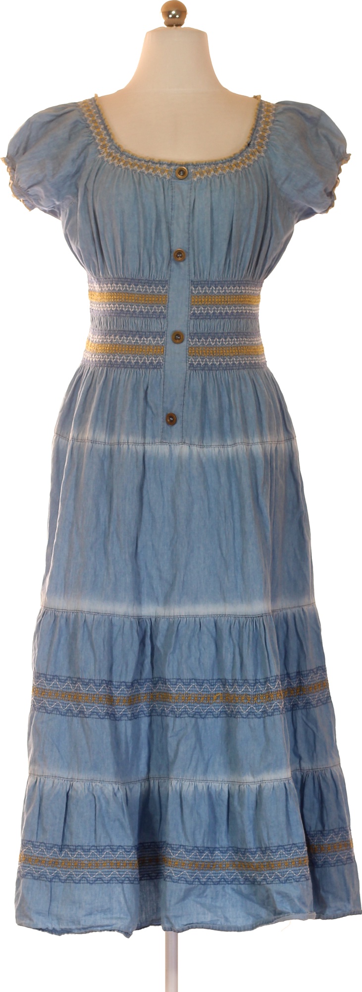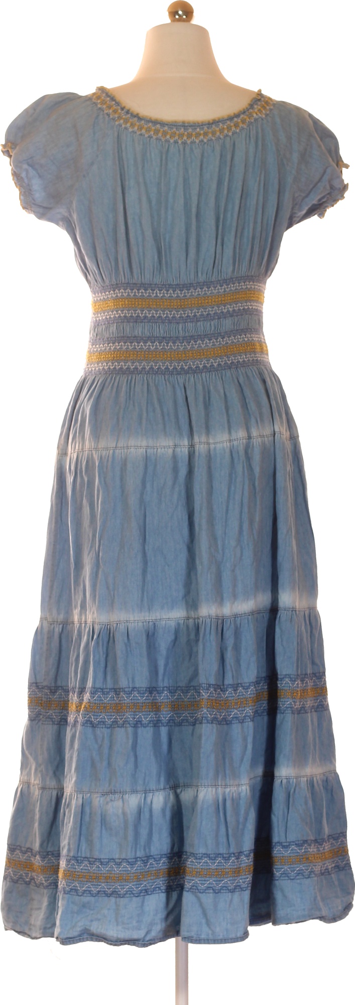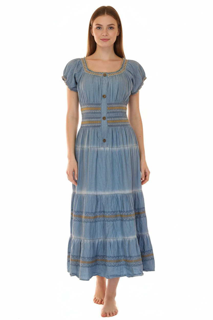 Dámské džínové šaty s krátkým rukávem a výšivkou boho letní Velikost S