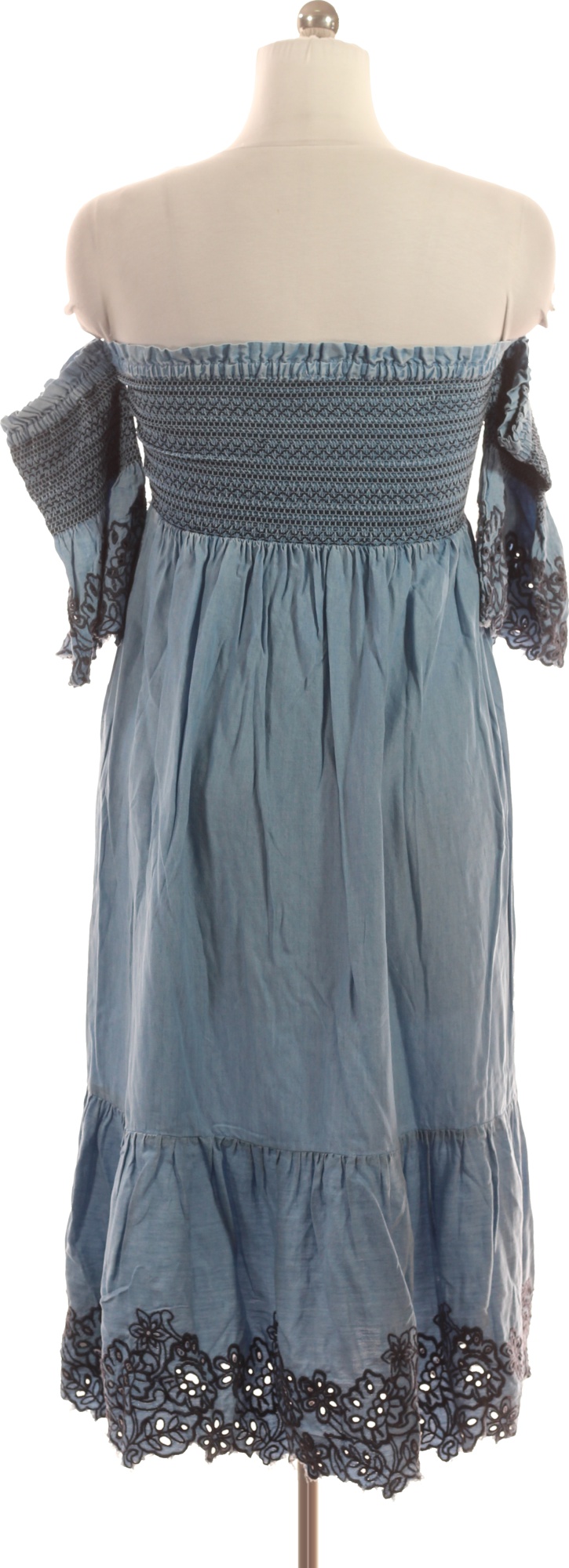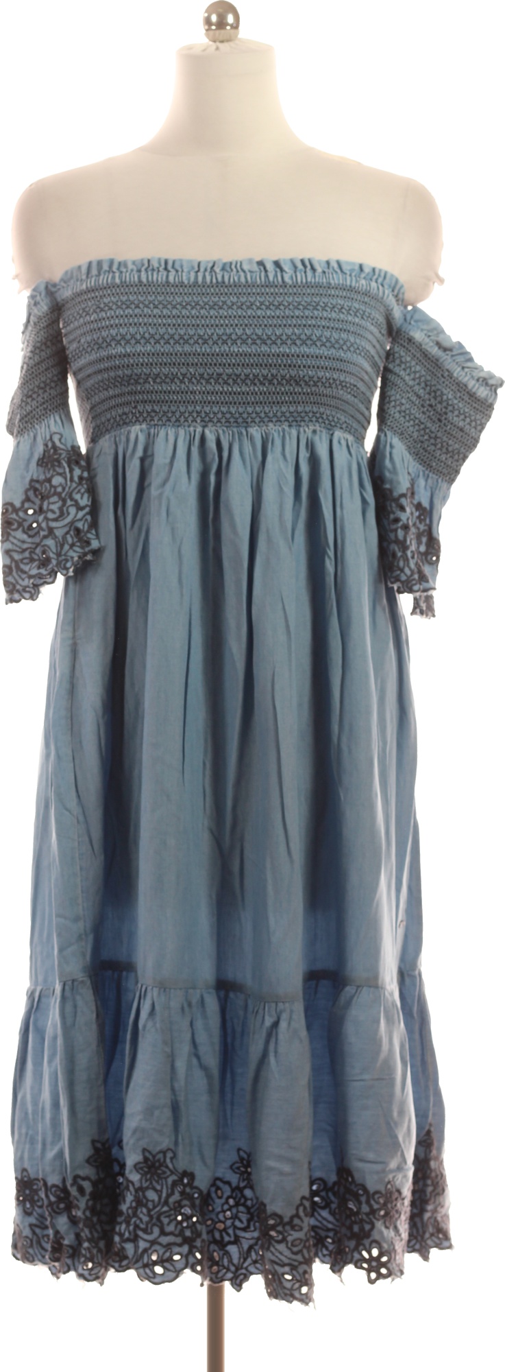 Pepe Jeans Modré Lyocellové Midi Šaty Boho S Odhalenými Rameny Vyšívané Letní Volné Vel. XS