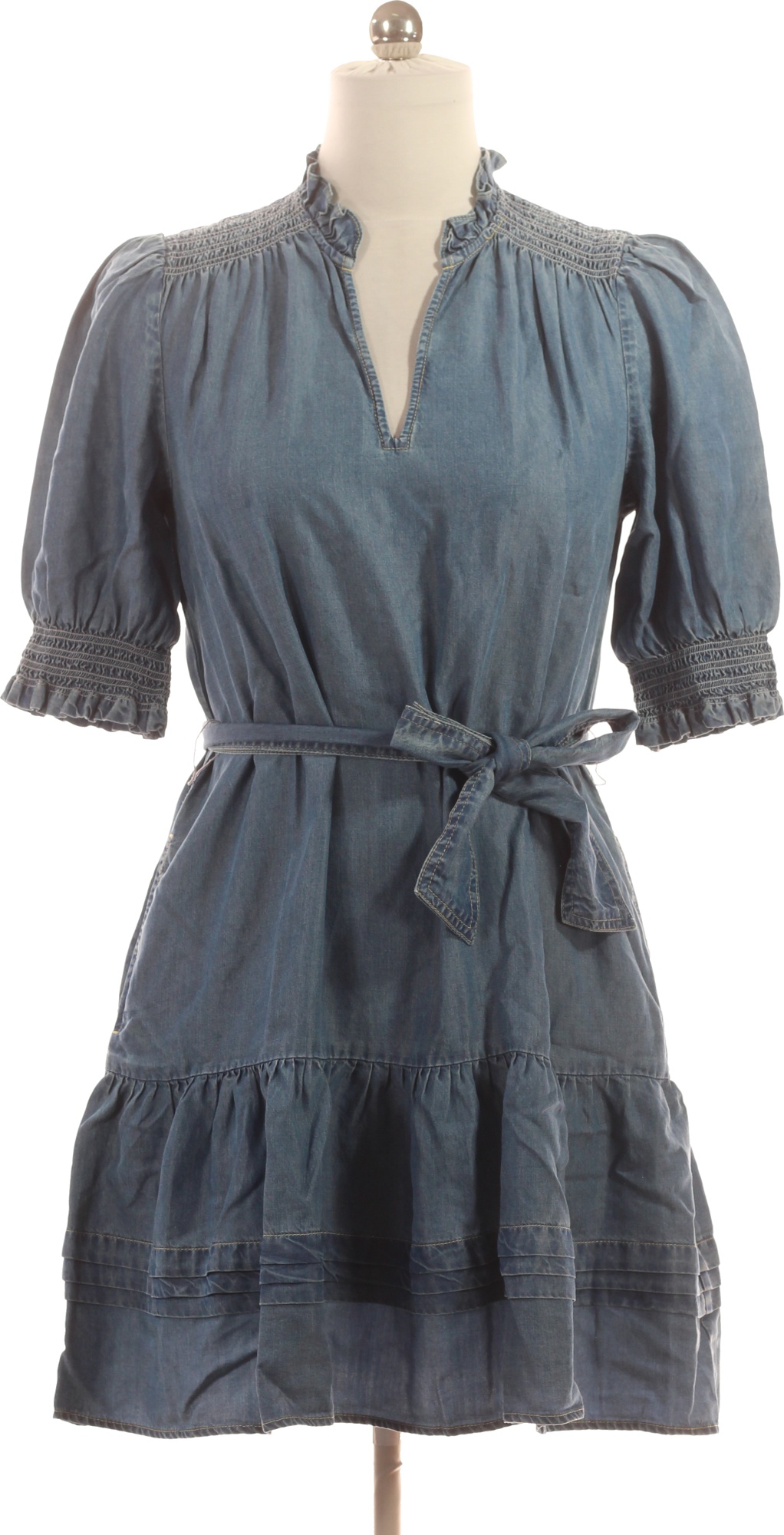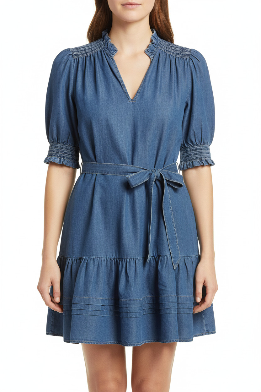 Ralph Lauren Dámské džínové šaty s krátkým rukávem a páskem Velikost M