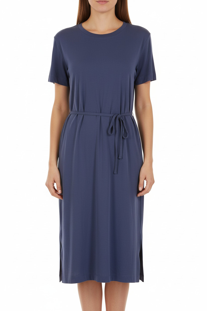 Esprit Dámské modré tričkové midi šaty s páskem a rozparkem volné Vel. M