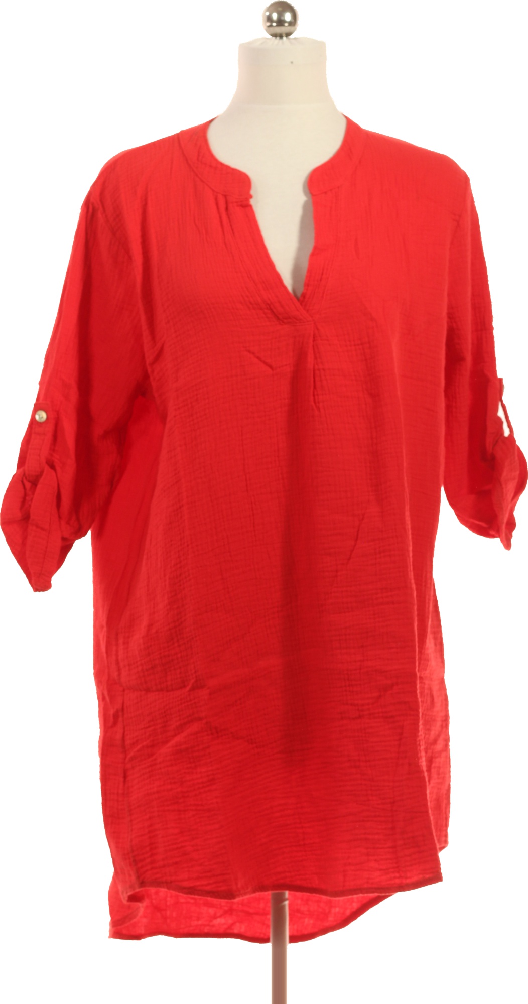 Zwillingsherz Dámské červené mušelínové šaty s krátkým rukávem volnočasové letní tunikové Velikost XXL