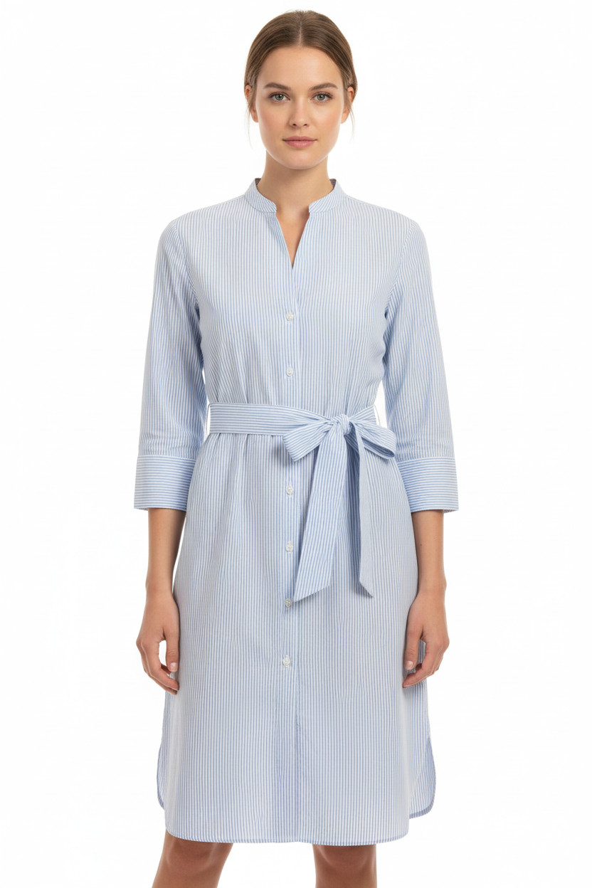 LAWRENCE GREY dámské šaty košilové s páskem modré pruhované s dlouhým rukávem Velikost 38