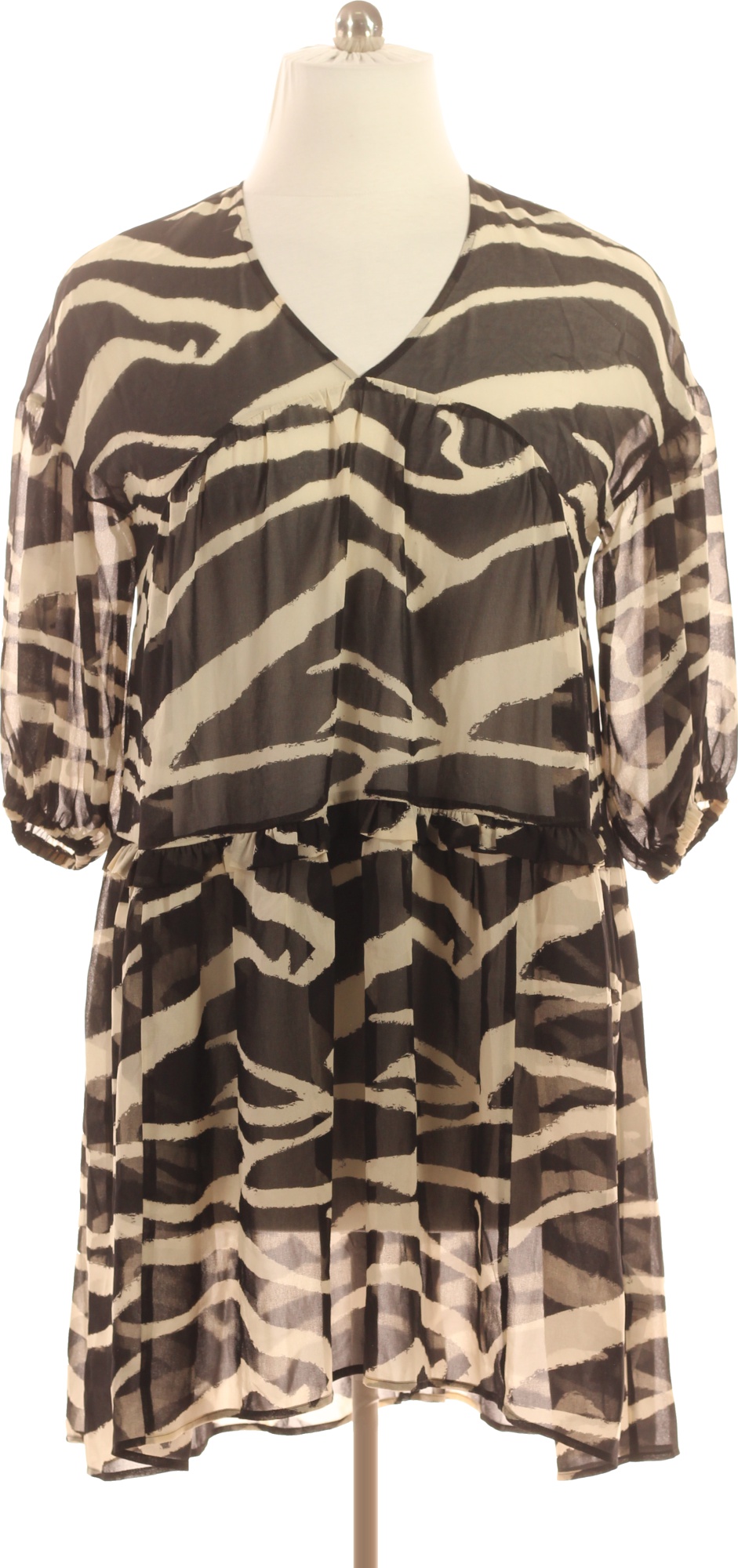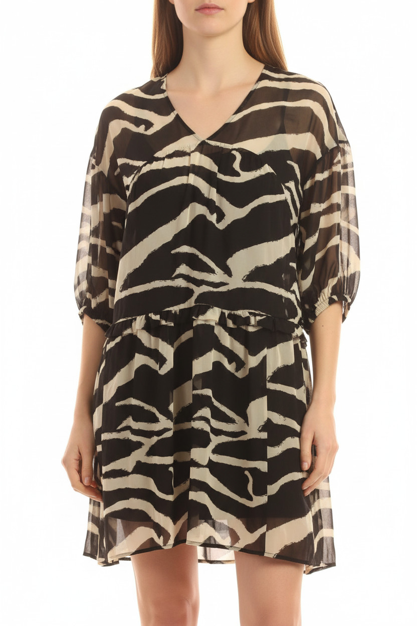 Esprit Dámské šaty s dlouhým rukávem zvířecí vzor černé béžové volnočasové Vel. EU M
