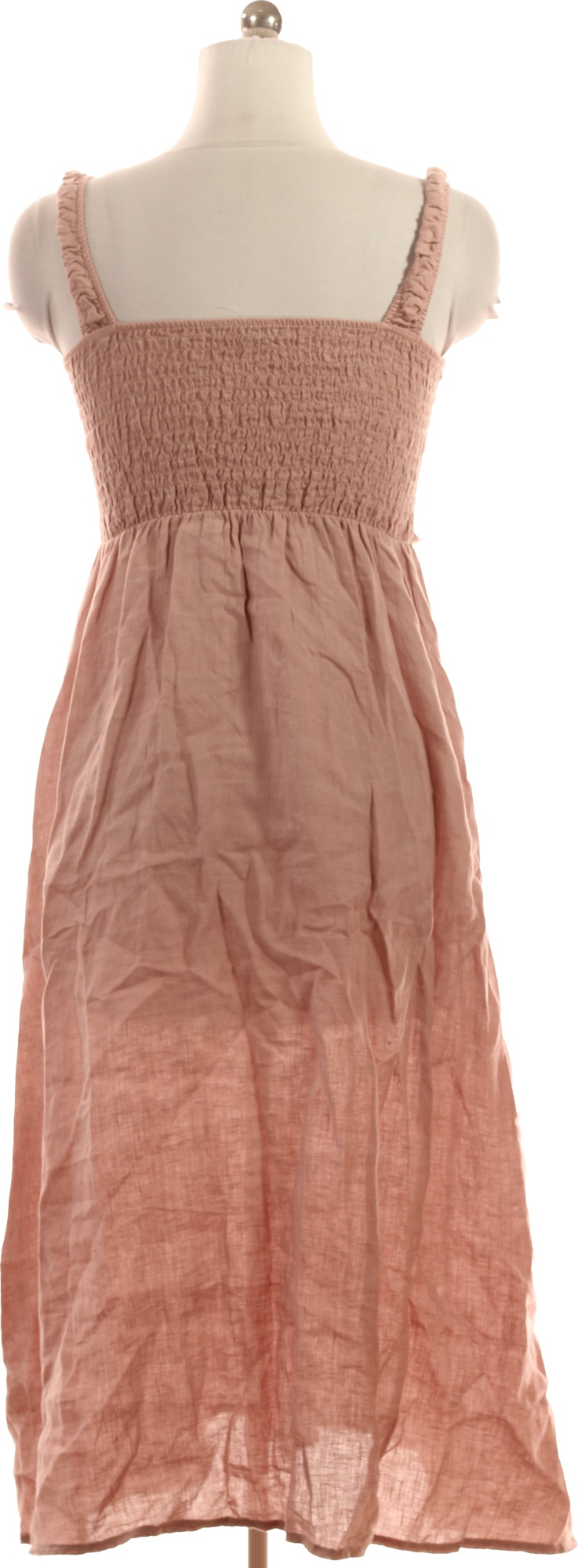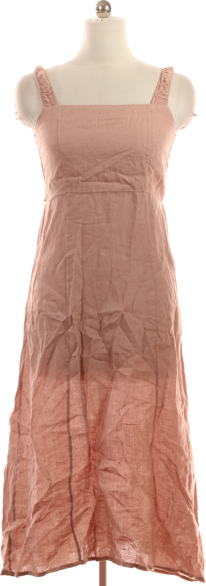 LAWRENCE GREY Růžové lněné šaty na ramínka midi letní volnočasové Velikost m