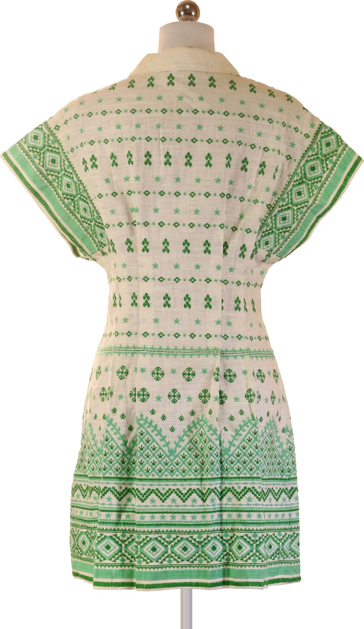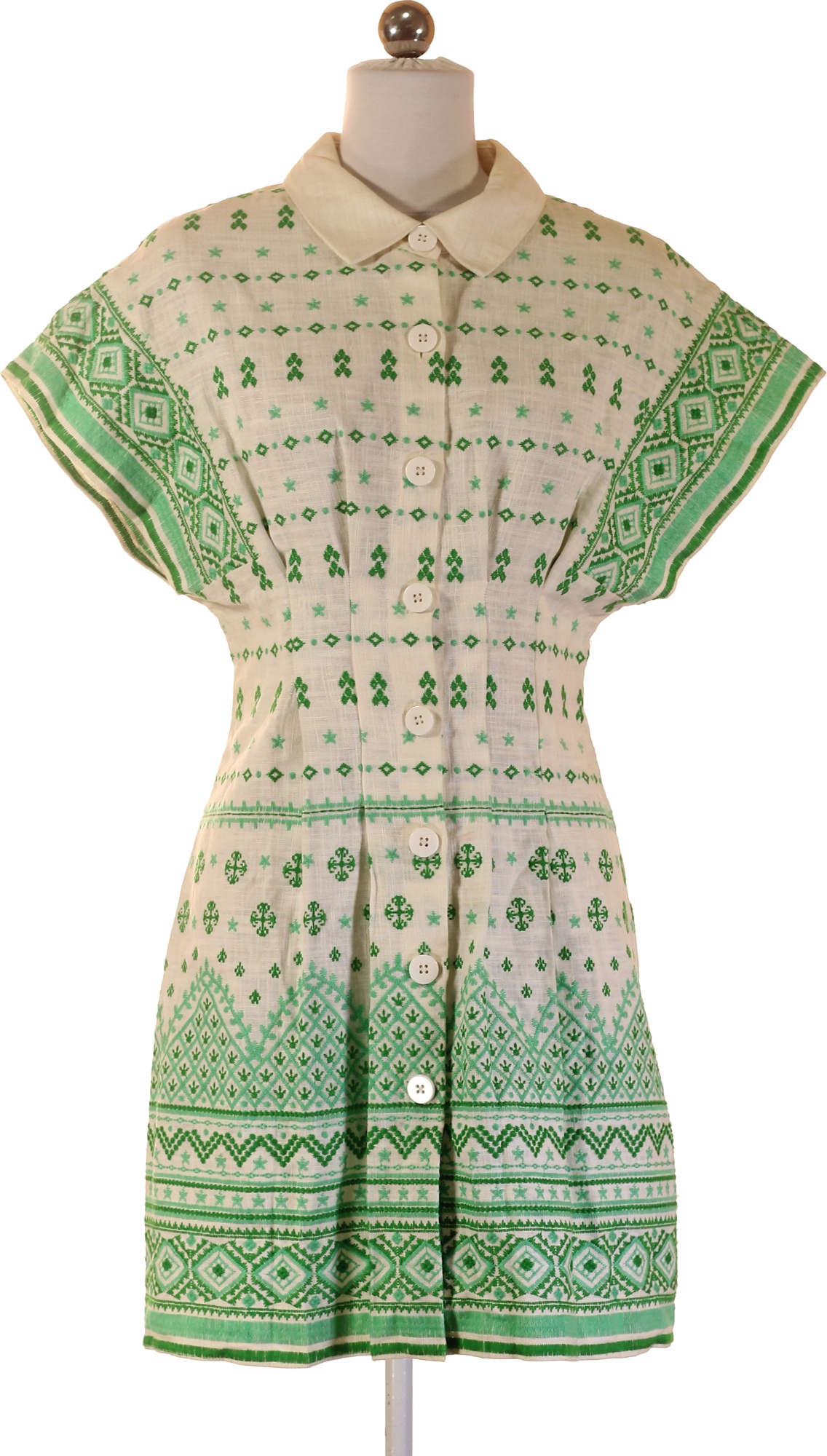 Maje Dámské šaty krátké propínací zelené vyšívané lněné retro denní Velikost 36