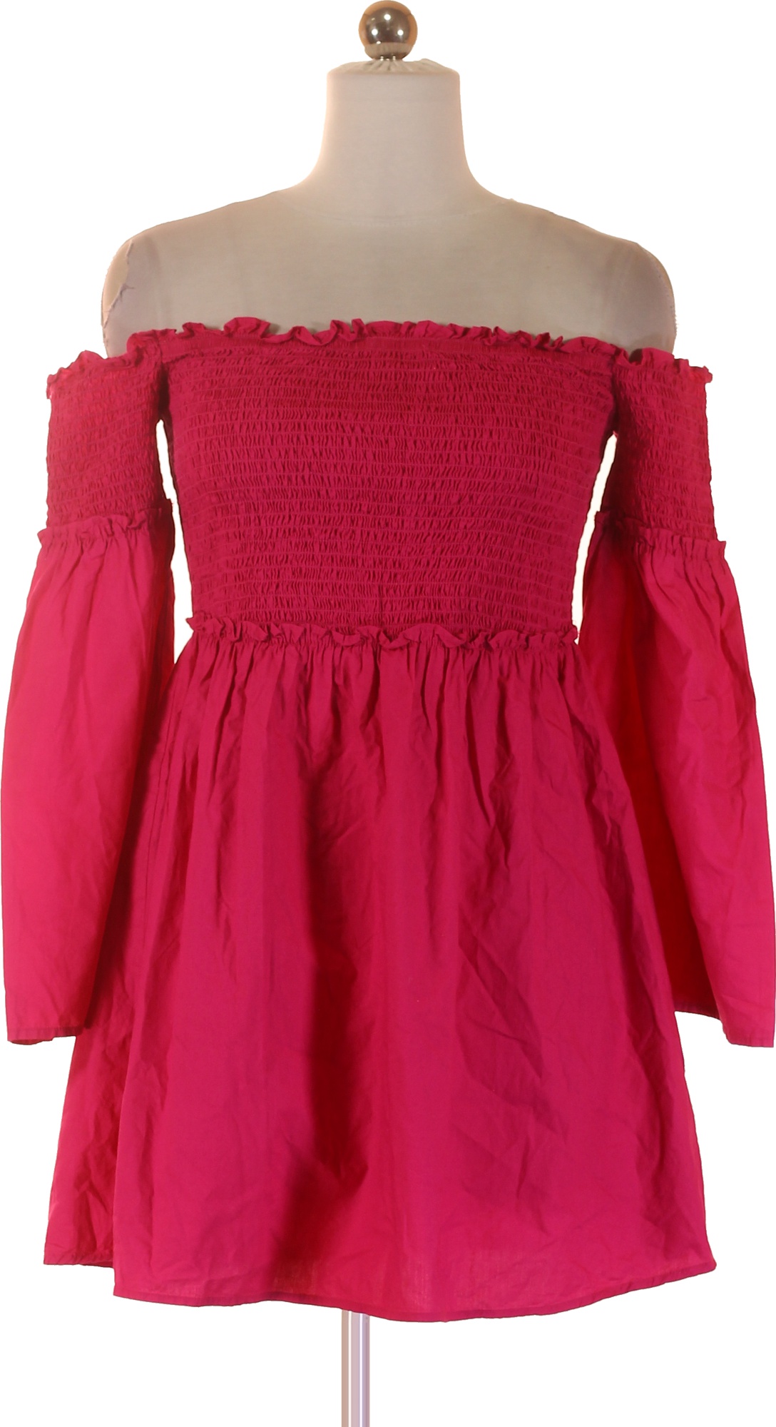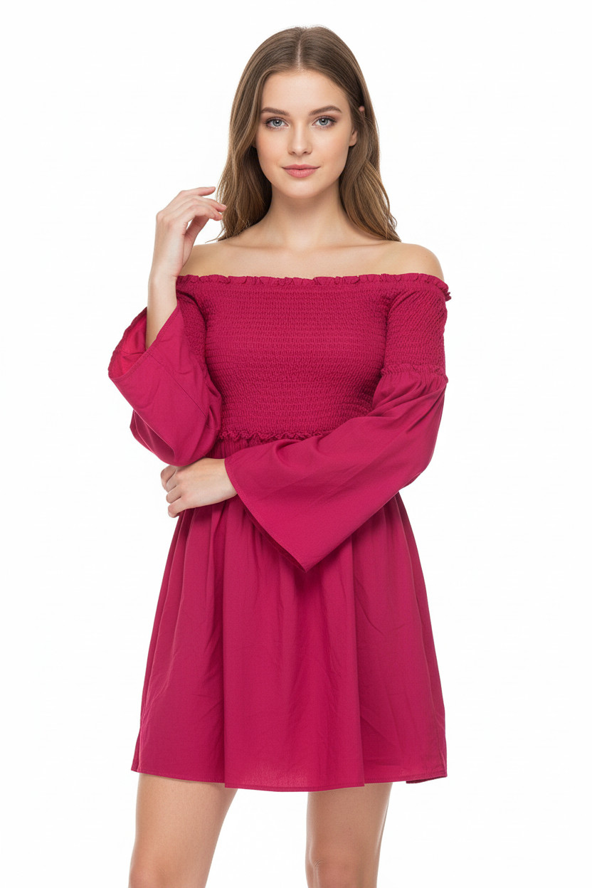 Růžové letní šaty odhalená ramena dlouhý rukáv volné tunikové Vel. XS