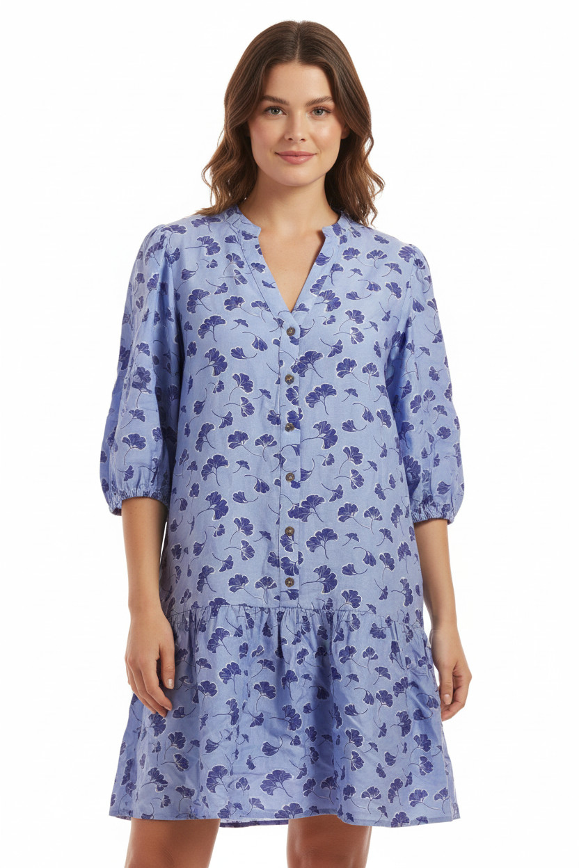 mbyM Viskózové modré šaty krátké volné květované denní Velikost L