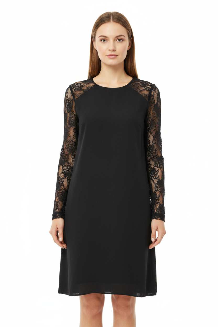OBJECT Dámské šaty černé krajkové s dlouhým rukávem elegantní Vel. 42
